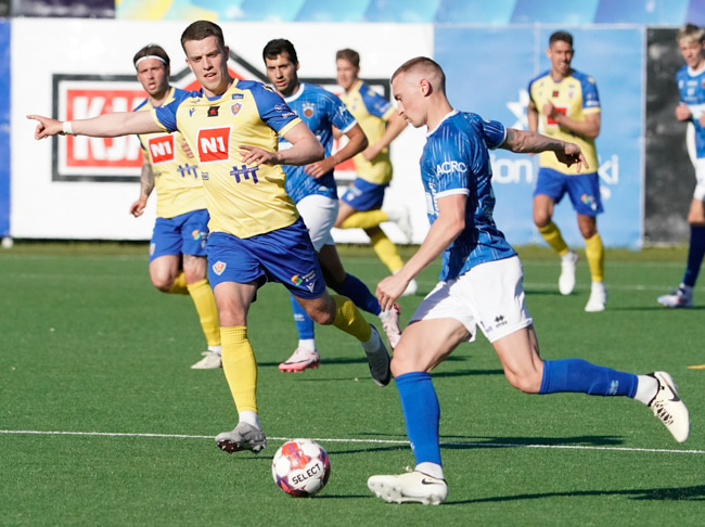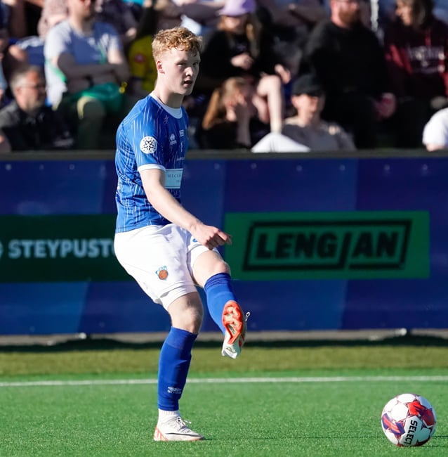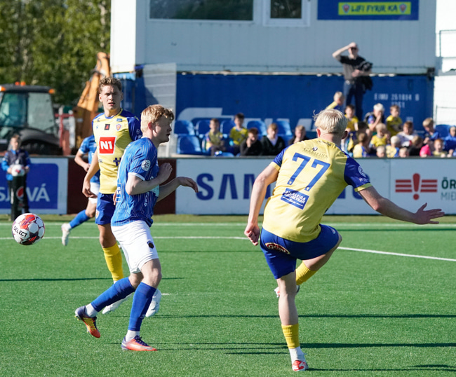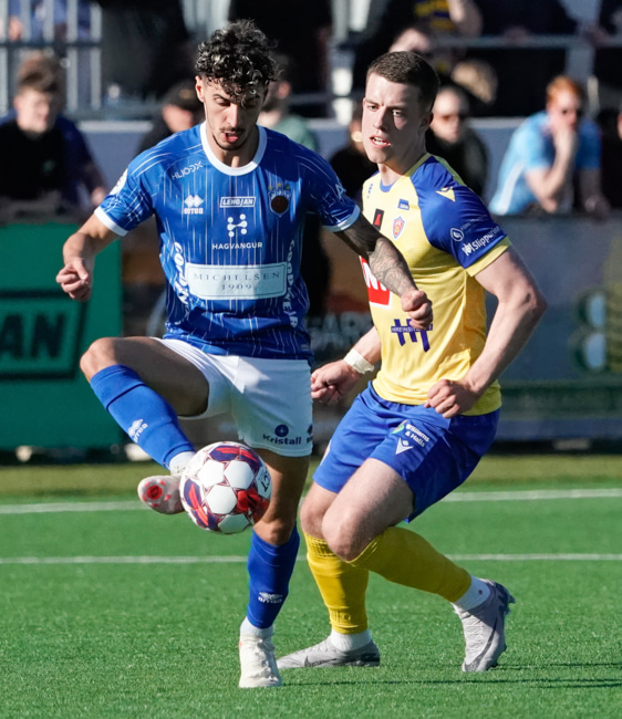 Sveinn Maargeir komst inn á teiginn og átti sendingu út í teiginn á Harley Willard sem hittir boltann ansi illa og hann fer langt framhjá.
