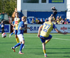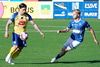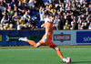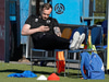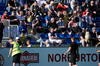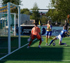 Stubbur grípur fyrirgjöf og lendir á stönginni í leiðinni. Þarf aðhlynningu. Nei, fær bara aðeins að teygja úr sér og leikurinn heeldur áfram.