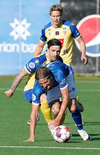Tiago með skot fyrir utan teiginn en Steinþór Már sér við honum.