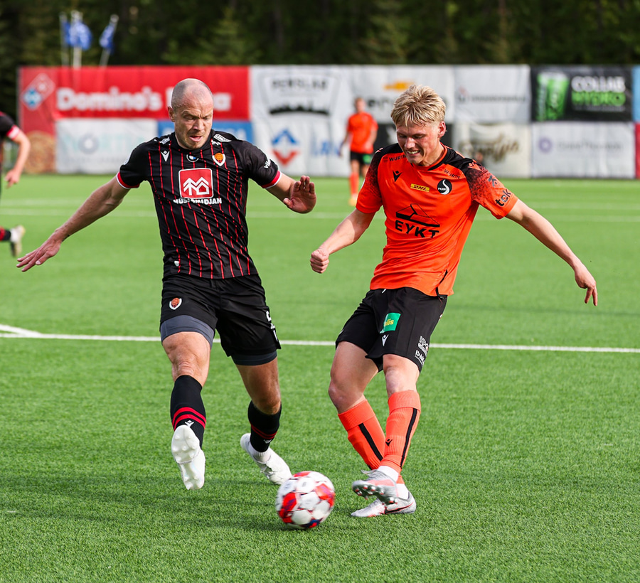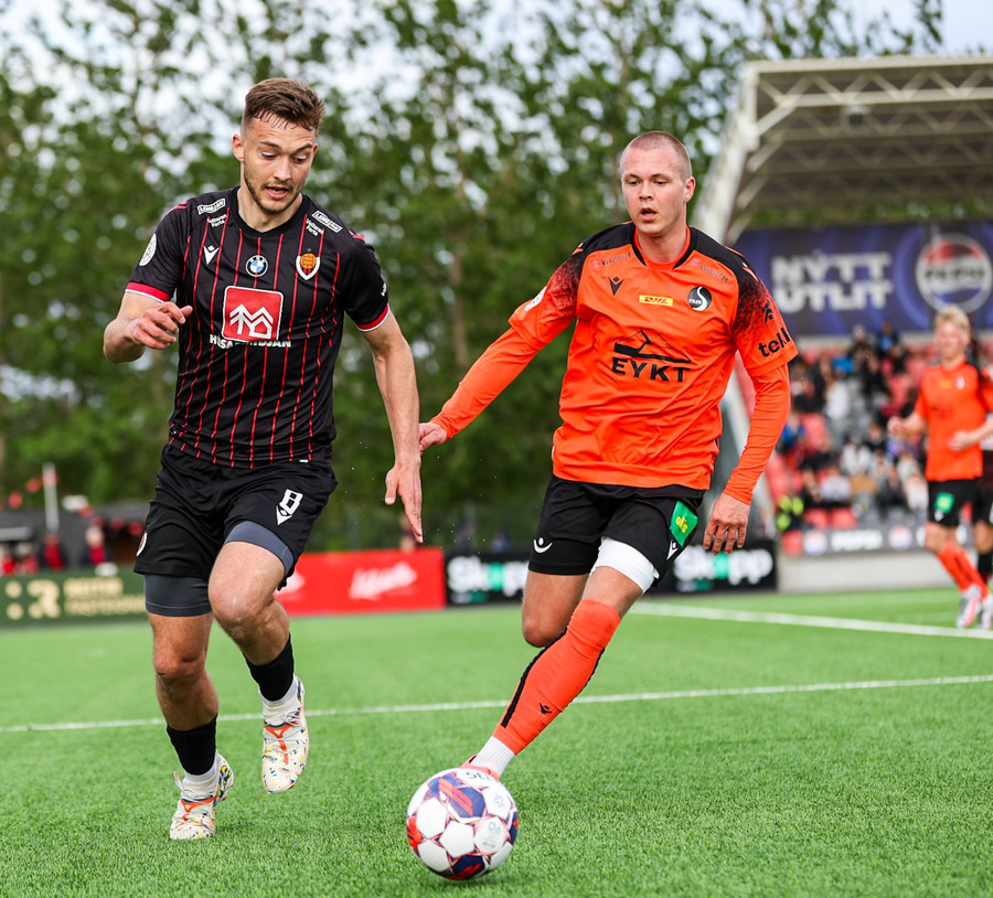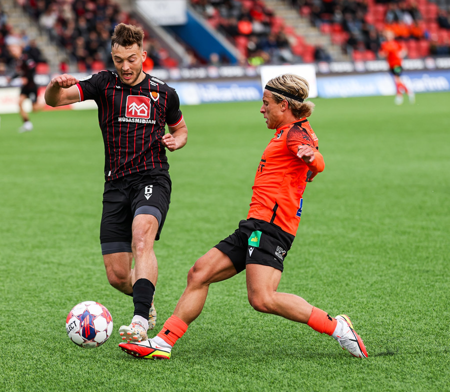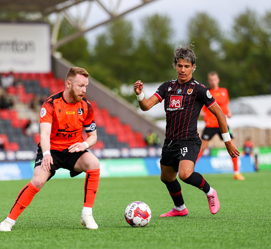 Karl Friðleifur með fyrirgjöf frá hægri eftir að hafa skilið Orra Hrafn eftir. Valdimar mætir í hlaupið og nær skallanum en yfir markið fer boltinn.
