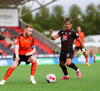 Arnór Breki reynir skotið en lyftir boltanum yfir markið.