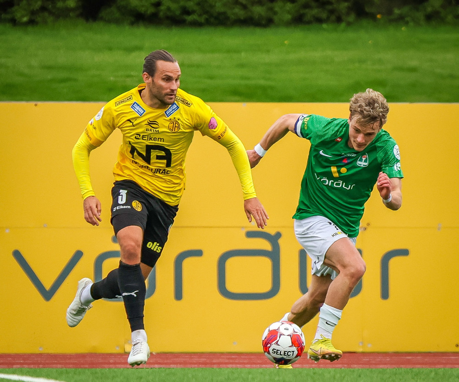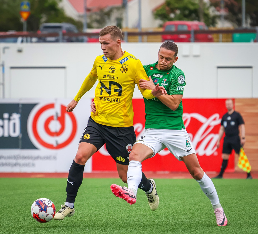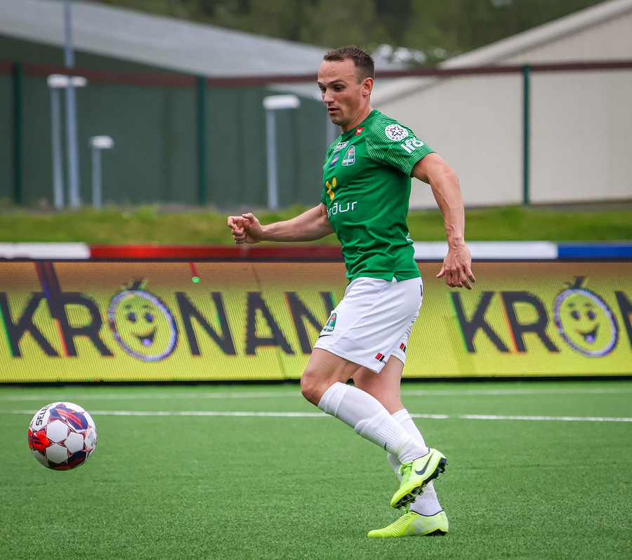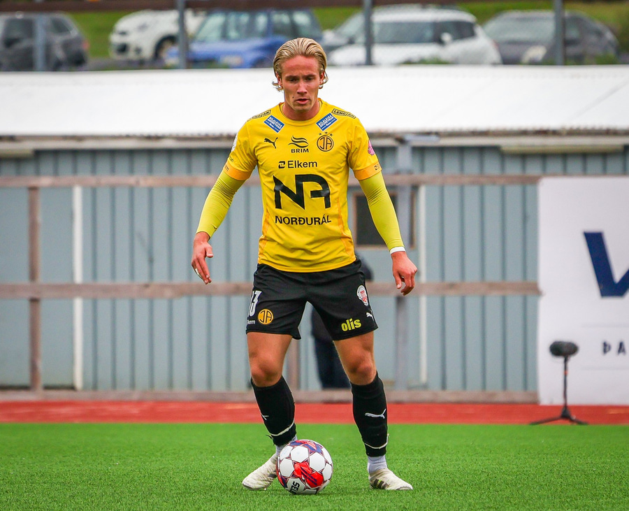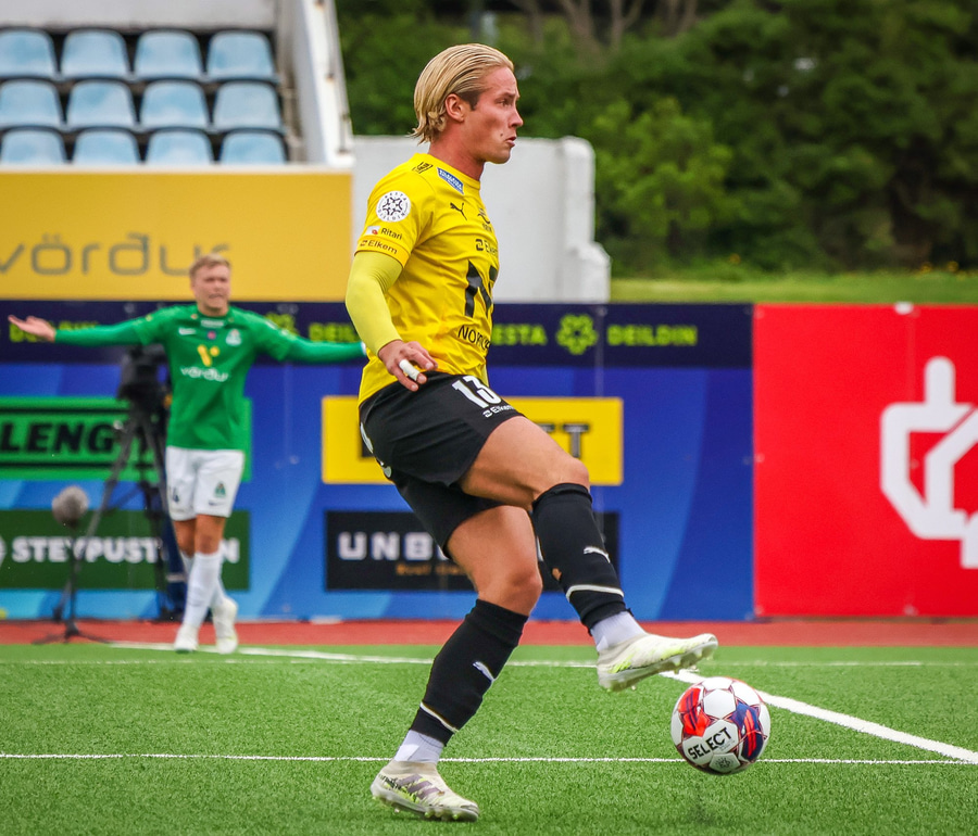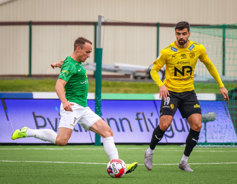 Benjamin Stokke kemur boltanum út á Oliver Sigurjóns sem á gott skot á markið. Árni ver það mjög vel en þá fær Benjamin Stokke boltann fyrir framan opið mark og rennir honum í átt að markinu.