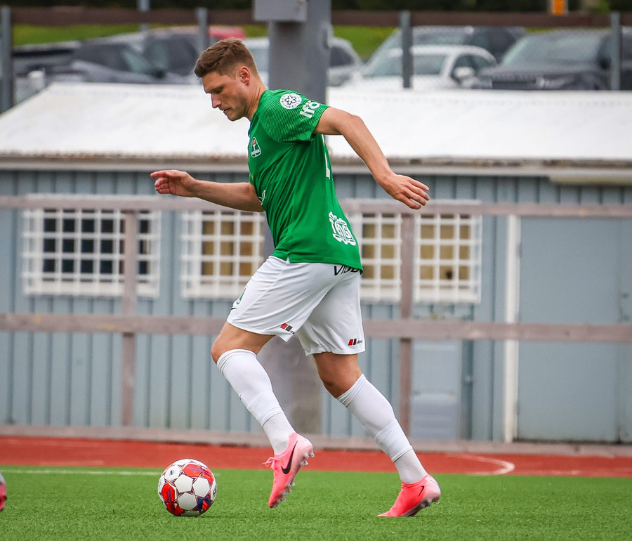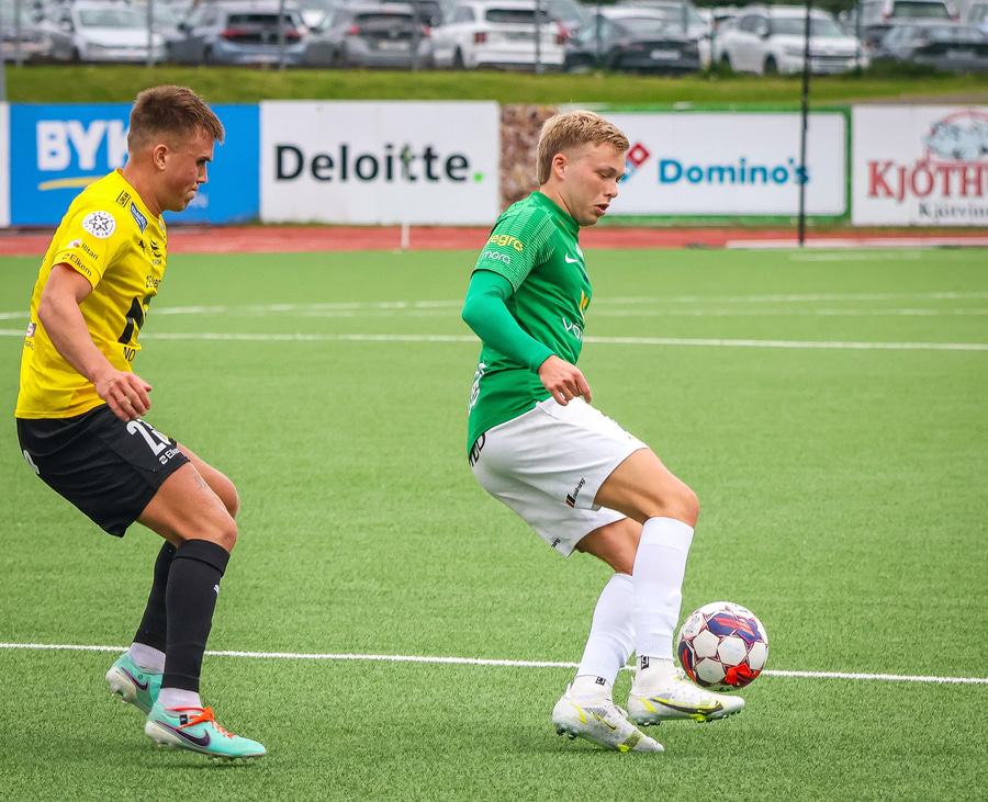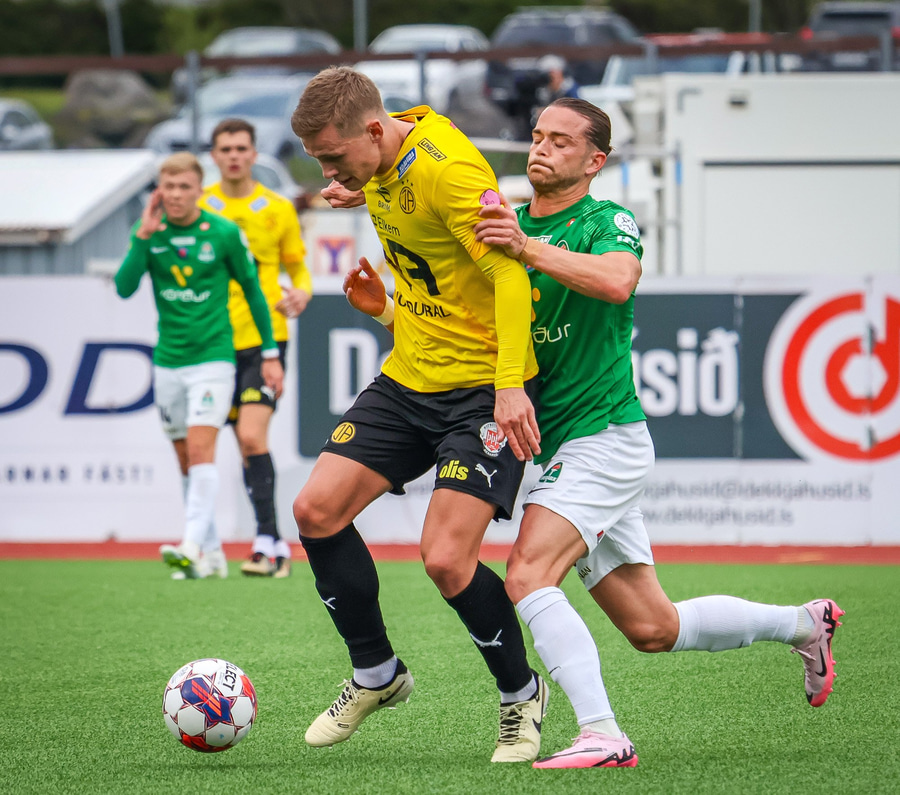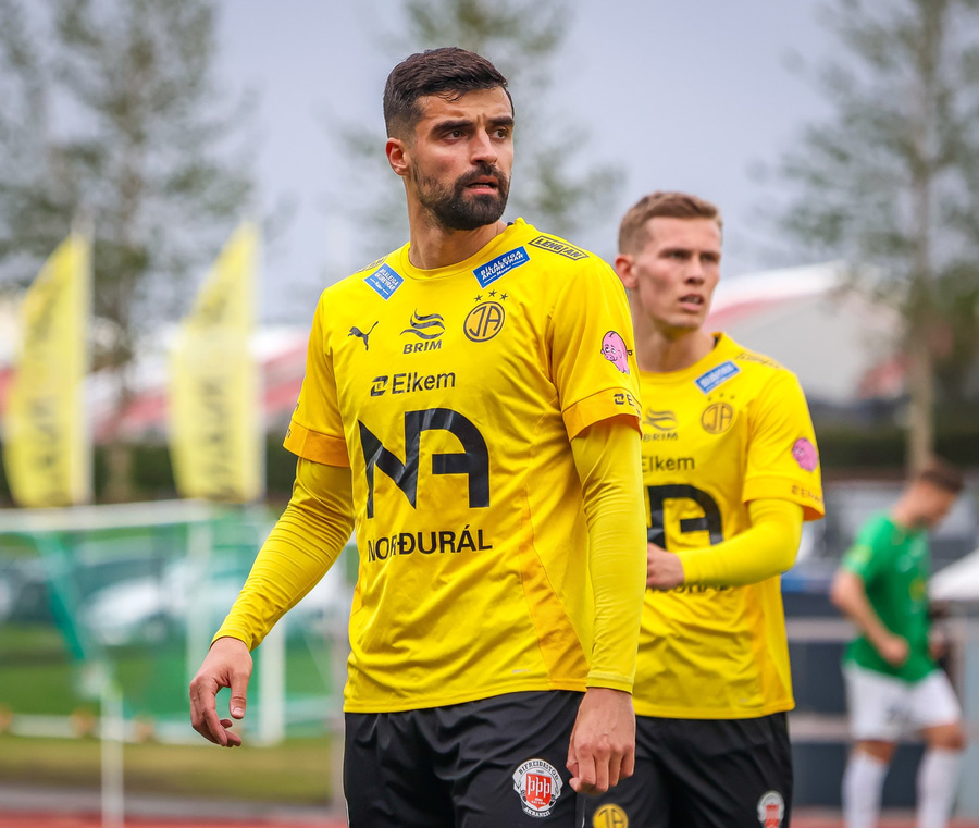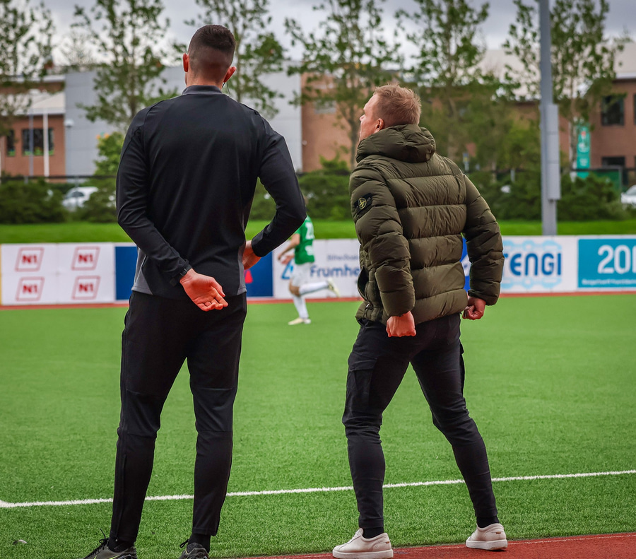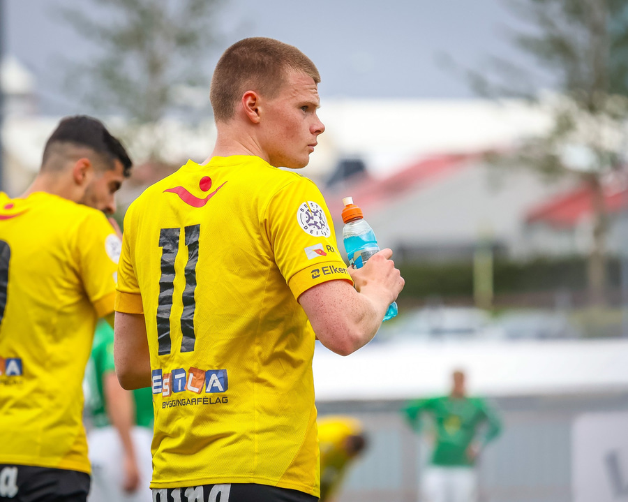 Benjamin Stokke kemur boltanum út á Oliver Sigurjóns sem á gott skot á markið. Árni ver það mjög vel en þá fær Benjamin Stokke boltann fyrir framan opið mark og rennir honum í átt að markinu.