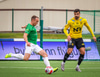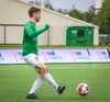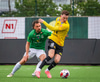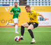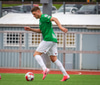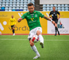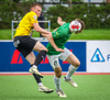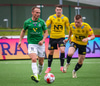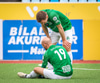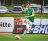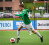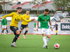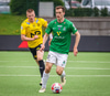 Blikar spila í grænum treyjum, hvítum stuttbuxum og hvítum sokkum.