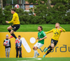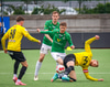 Gestirnir spila í gulum treyjum, svörtum stuttbuxum og svörtum sokkum.
