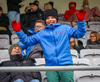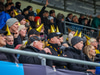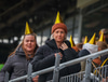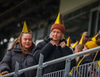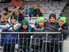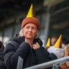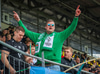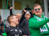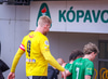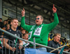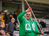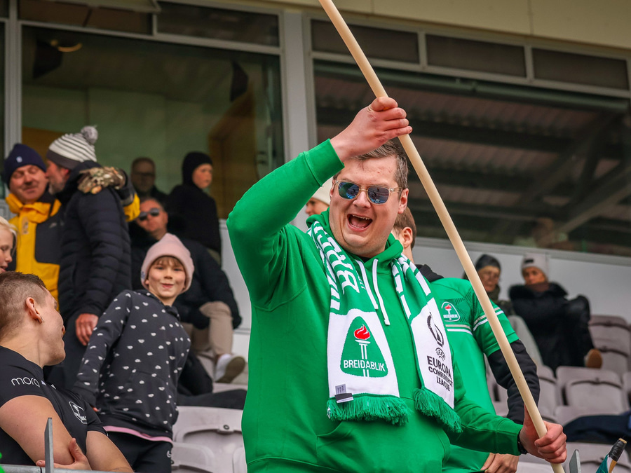 Hilmar Jökull, stuðningsmaður Breiðabliks, er með grænan brúsa hangandi á veiðistöng þegar liðin ganga til vallar. Ekki veit ég afhverju samt.
