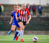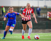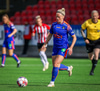 Eva Rut með skot úr aukaspyrnu langt utan að velli sem Mollee er ekki í neinum vandræðum með.