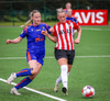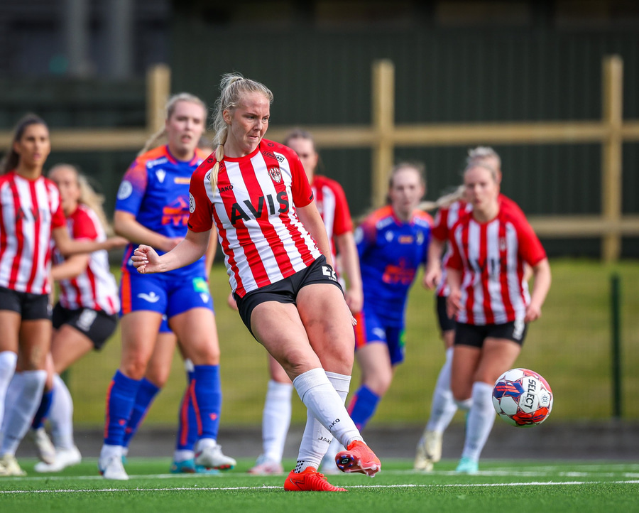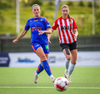 Caroline með glæsilega takta úti vinstra meginn og kemur svo með boltann fyrir. Þar er Sigríður mætt en skotið hennar fer rétt framhjá.