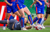 Caroline með mjög gott hlaup og á svo fyrirgjöf inn á Freyju sem tekur skotið í fyrsta. Skotið var ekki kraftmikið og lag framhjá. Samt ekki alveg framhjá og aftur fyrir þar sem boltinn fór út í innkast.