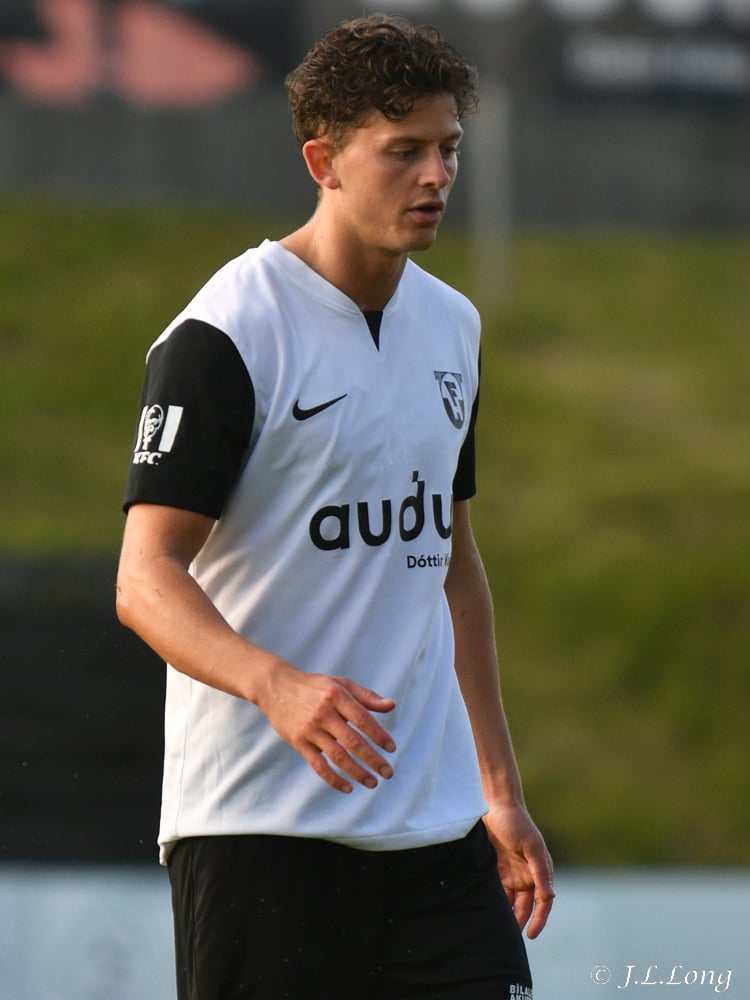 Ísak Óli ekki langt frá því að endurtaka leikinn frá því í fyrri hálfleik og skora eftir horn en boltinn yfir markið.