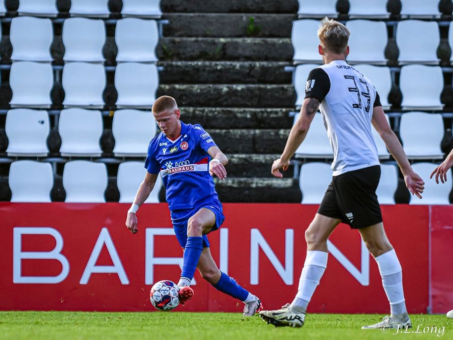 Stuttu fyrir skiptingu vildu HK fá víti þegar Brynjar Snær reyndi að koma með fyrirgjöf en Ívar Orri fljótur að veifa höndum um að ekkert væri í þessu.
