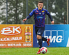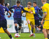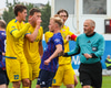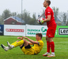 Baldvin Berndsen liggur í valnum eftir að Shkelzen tók þrumuskot sem fór í höfuð hans. Baldvin getur haldið leik áfram. Vont en það venst.