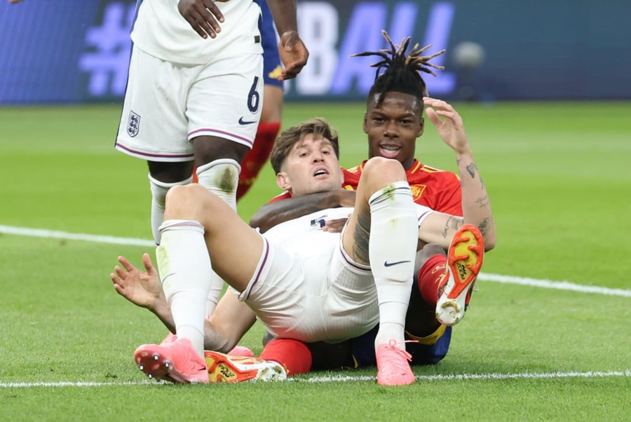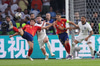 Spánn fékk horn en Stones reis hæst í teignum og skallaði boltann. Erum við að fara í framlengingu?