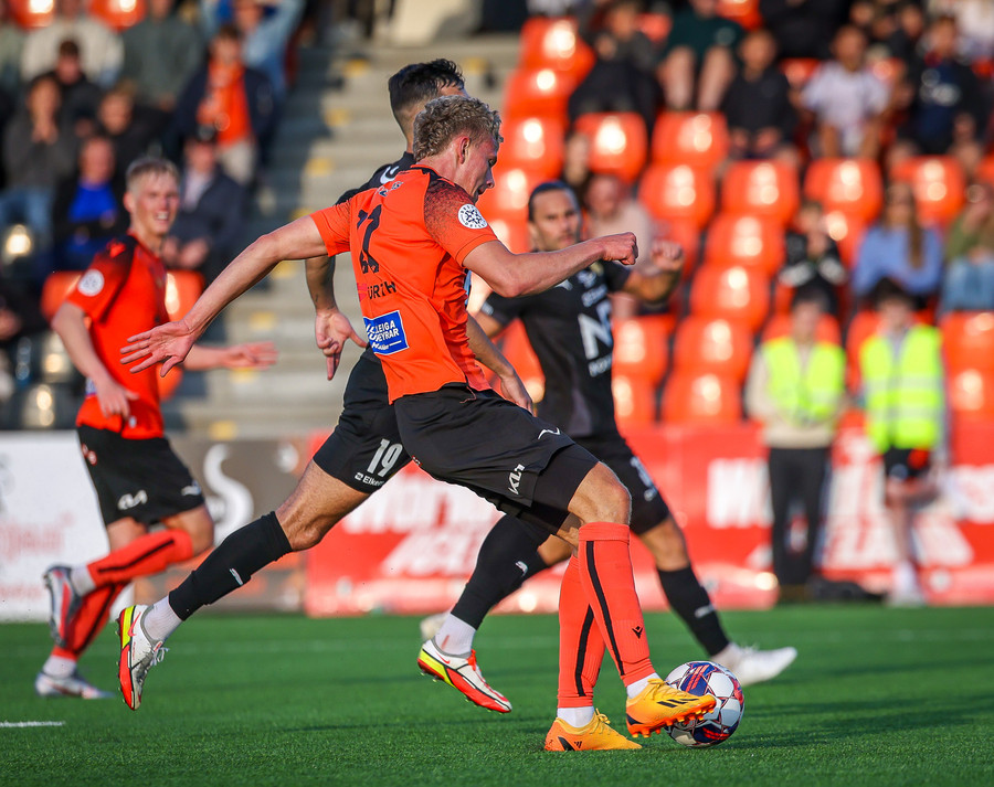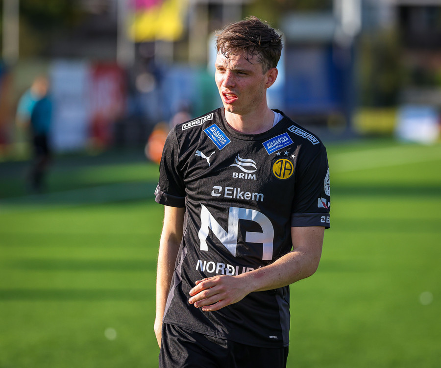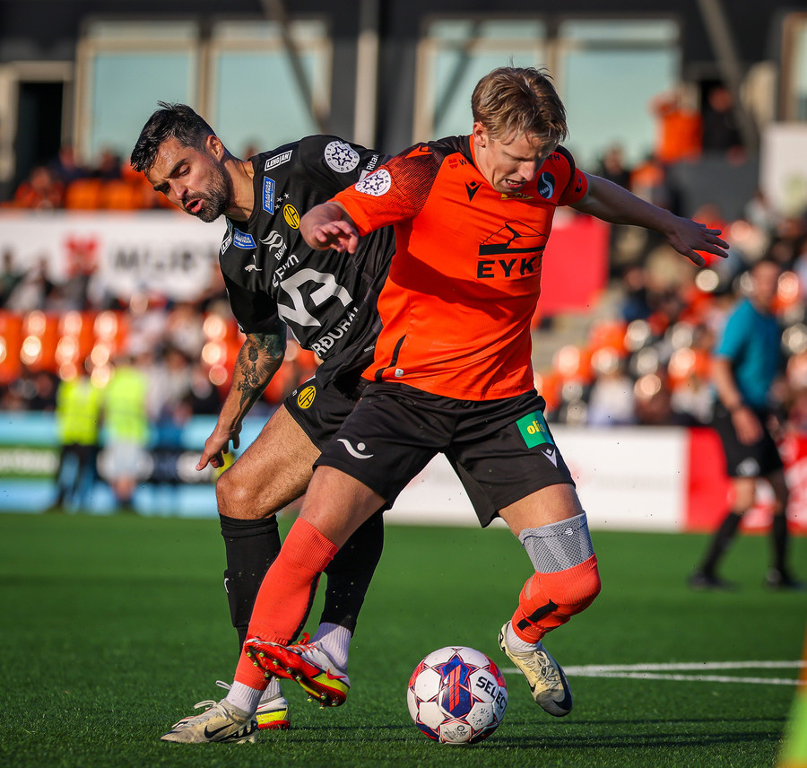Johannes Vall brunar upp vinstri vænginn og kemur með boltann fyrir á Viktor Jóns sem skallar boltann rétt framhjá. Hann var gjörsamlega einn og óvaldaður en gerði vel að ná skallanum.