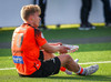 Arnór Breki tekur spyrnuna inn á teiginn sem fer beint á ennið á Orra. Orri tekur skallan á markið en Árni Marínó ver í annað horn.
