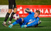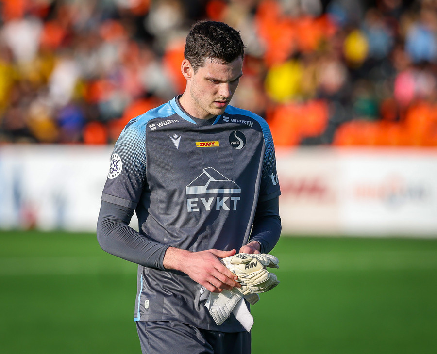 Johannes Vall tekur spyrnuna inn á teig sem Ólafur Kristófer gerir mjög vel í að handsama.