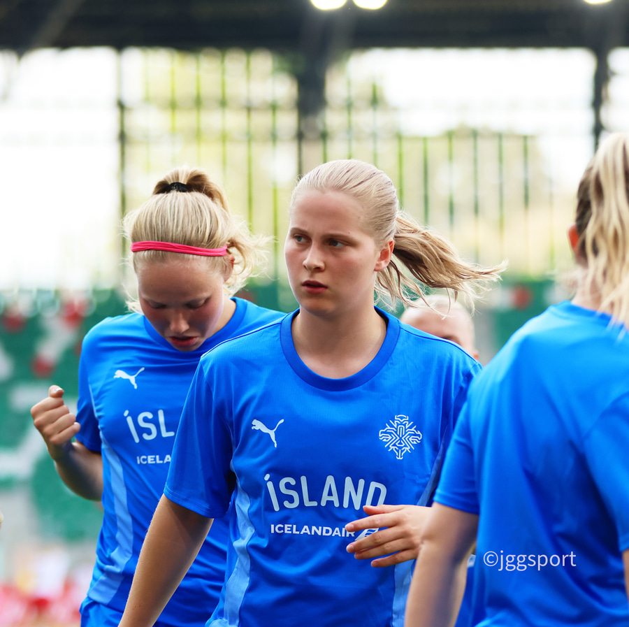 Emilía, sem valdi nýverið að spila frekar fyrir Ísland en Danmörku, er að byrja í fyrsta sinn með Íslandi og er að spila sinn annan landsleik.