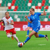 Sveindís kemst í boltann inn á pólska vítateignum. Hún á skot með vinstri fæti sem fer í utanvert hliðarnetið á marki Póllands. Markspyrna.