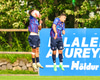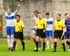 Róbert Quental tekur spyrnuna en Marc Mcausland skallar boltan úr teignum. Ágúst hreinsar síðan í innkast.