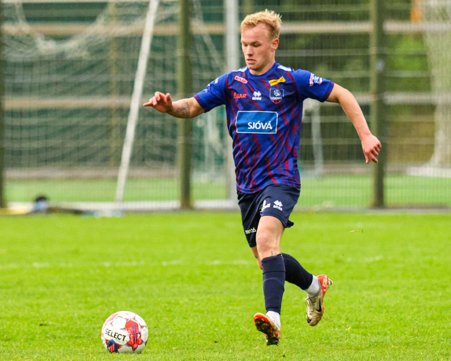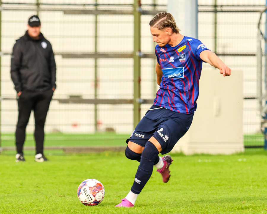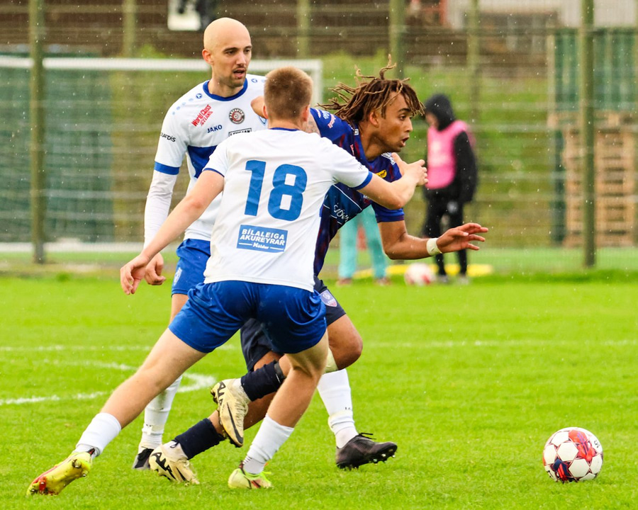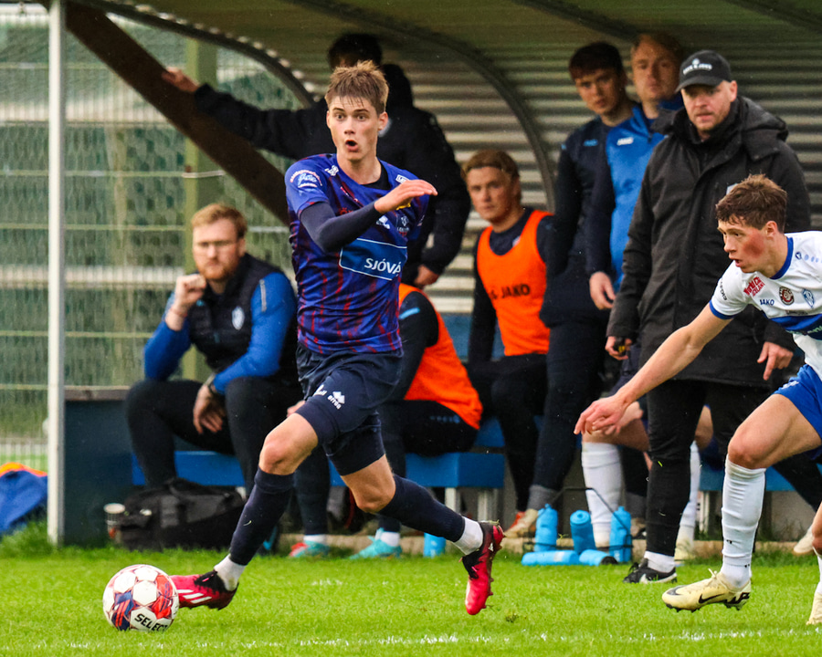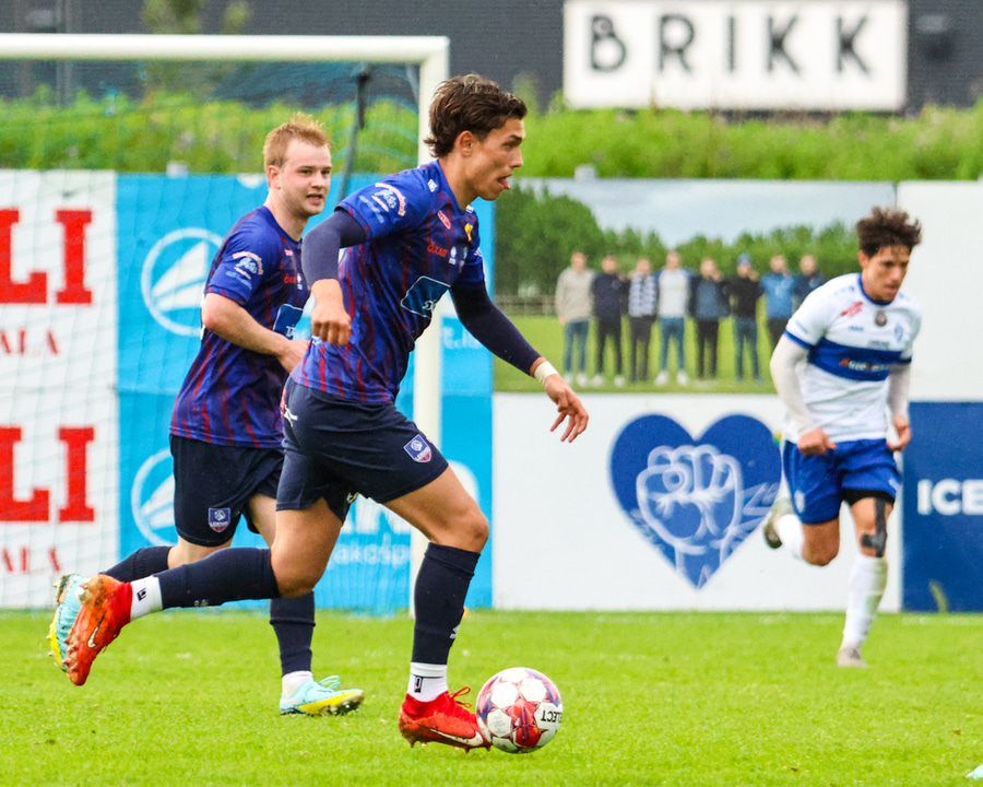 Marko keyrir upp völlinn og reynir að skjóta á markið en Viktor nær að handsama boltann.
