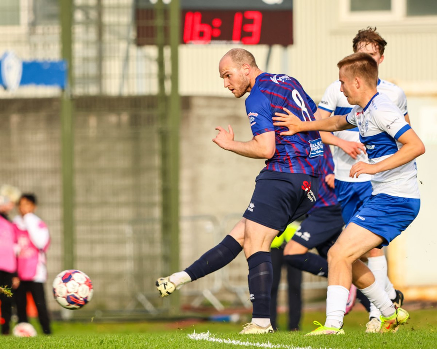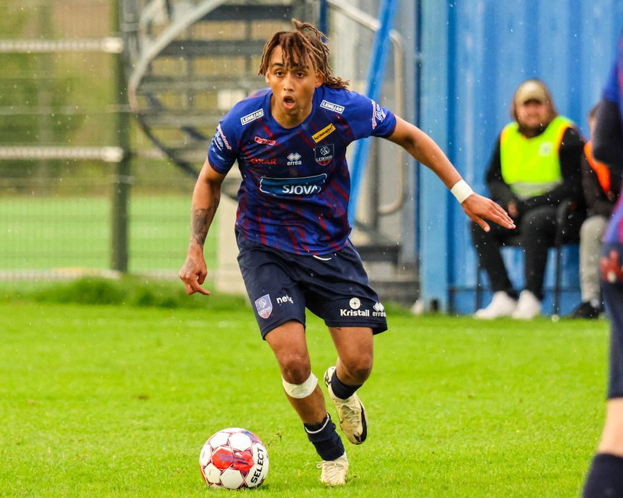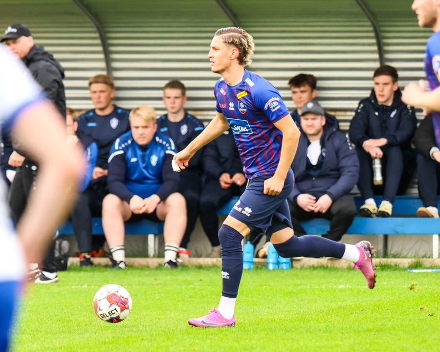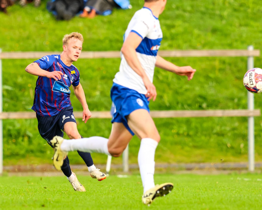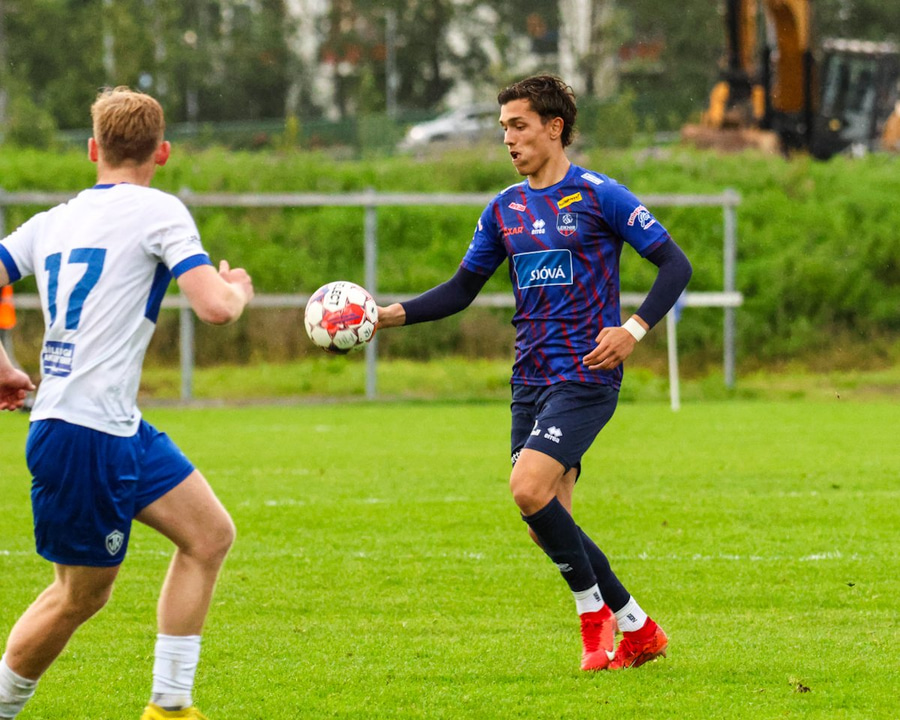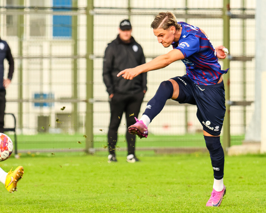 Marko keyrir upp völlinn og reynir að skjóta á markið en Viktor nær að handsama boltann.