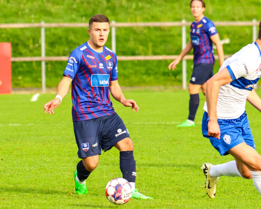 Bogdan Bogdanovic er að spila sinn fyrsta leik í meistaraflokki í dag. Skipti yfir í Leikni frá Breiðabliki í byrjun mánaðarins.