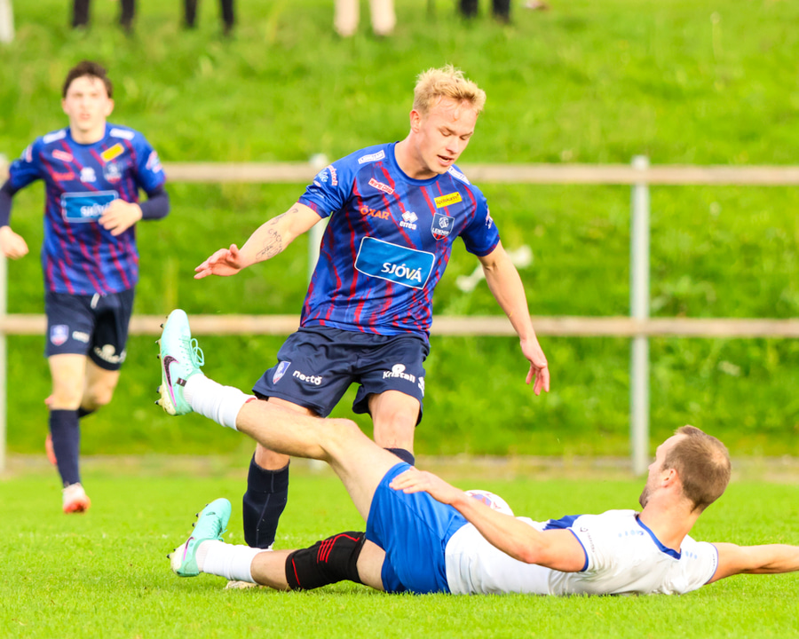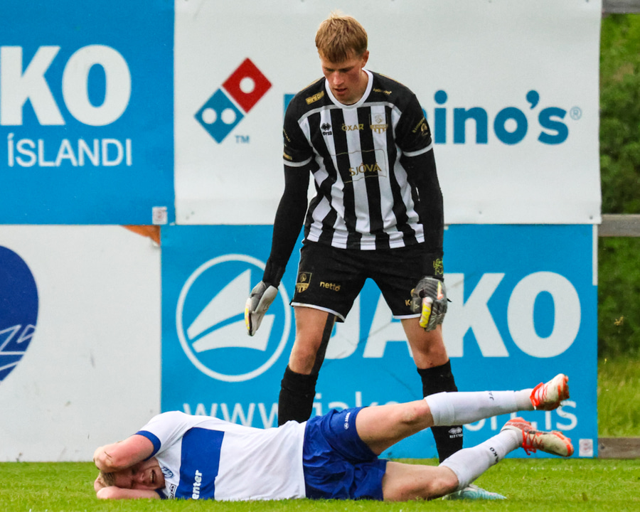 Róbert Quental á fyrirgjöf af hægri kantinum á fjærsvæðið í teignum, beint á Omar Sowe. Hann kemst framhjá Ágústi og reynir skot sem Vilhelm ver.