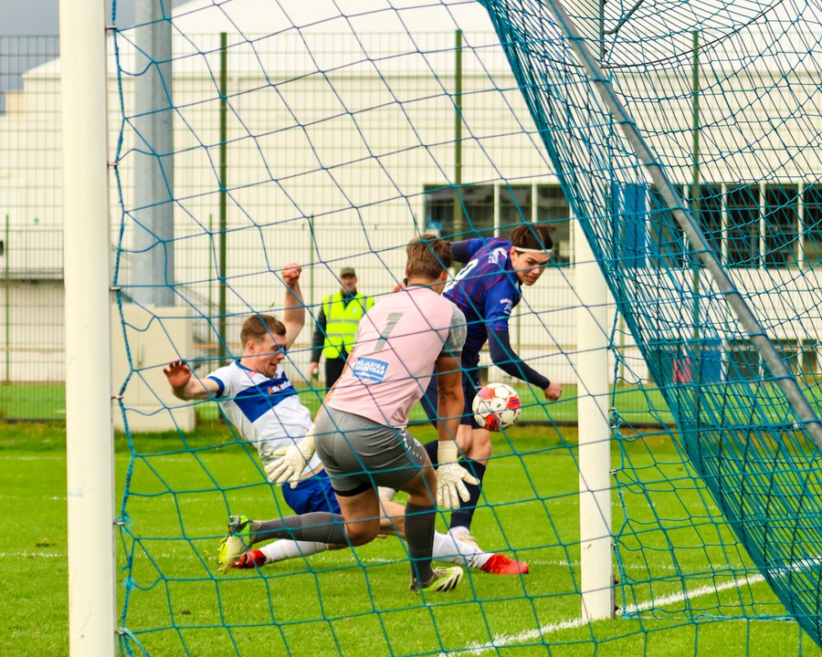 Bergvin kemst inn í teiginn. gefur hann til vinstri á Martein sem getur sett boltann í autt netið. Þá kemur Andi með geggjað tæklingu og bjargar þar með marki.
