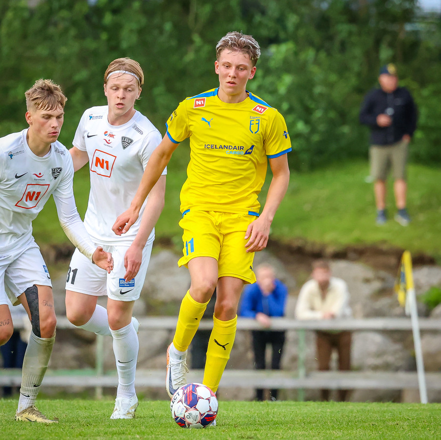 Oliver Heiðarsson með bestu tilraunina hér í upphafi þessa leiks. Fín sókn ÍBV endaði með fyrirgjöf sem Sverrir Páll Hjaltested átti og svo stangarskoti frá Oliver.