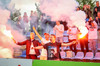 Móttökurnar eru hinsvegar fyrsta flokks og mér við hlið er drykkur sem hæfir vel fyrir seinni hluta föstudags. Vallarþulurinn er að kynna leikmenn og grilllyktin er í loftinu. Þetta verður vonandi mikil skemmtun.