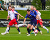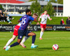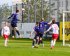 Kári Steinn fær boltann og reynir að finna Þorstein Emil í gegn en boltinn í hendur Arons Birkis.