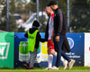 Fékk eitthvað högg á lærið áðan þegar hann fékk boltann á miðjum velli.