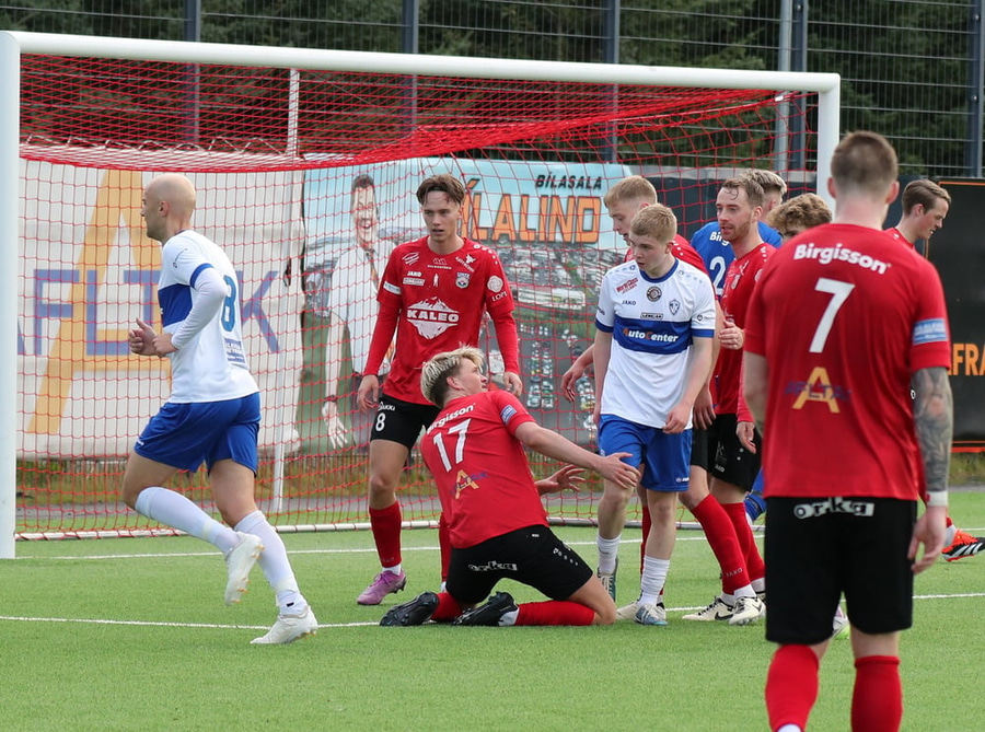 Bragi tekur skotið langt fyrir utan teig beint á Jökul. Skotið er hinsvegar ágætlega fast þannig Jökull er í smá veseni með að handsama botlan en það tekst á endanum.