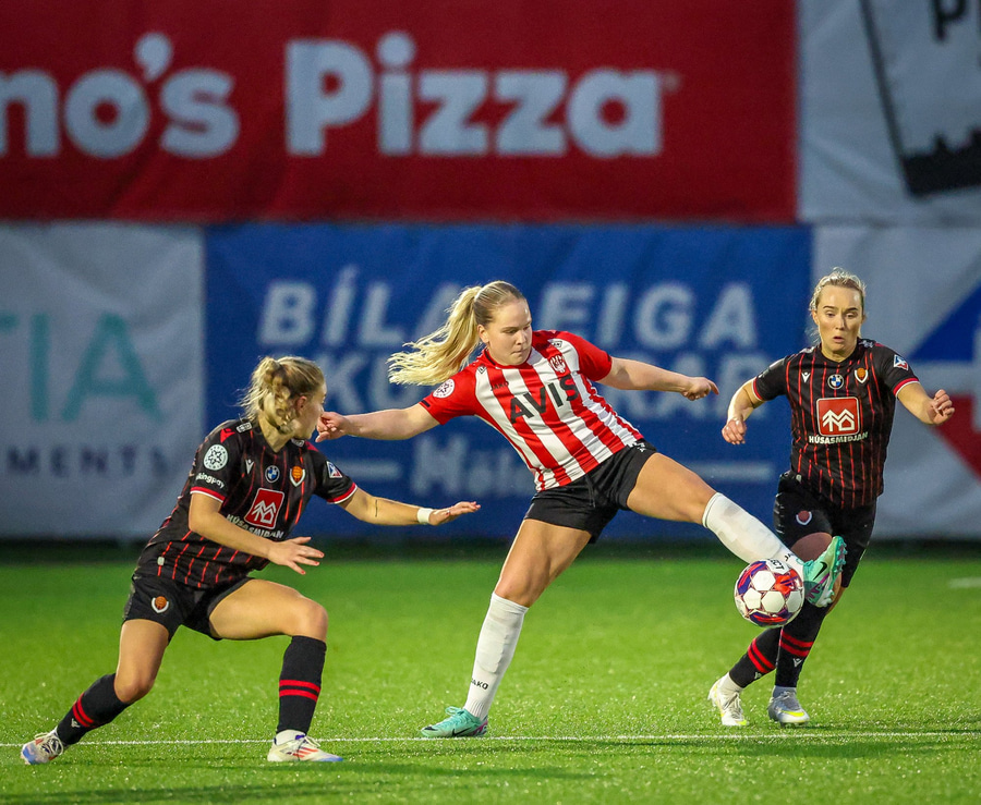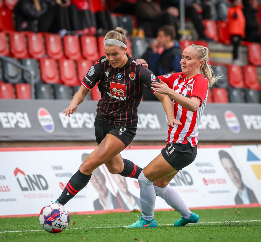 Spurning með þennan varnarleik hjá Maríu Evu sem var að dekka Huldu á fjærstönginni og nær illa að hreinsa boltanum frá. Hefði getað gert betur og þetta er rándýrt í svona lokuðum leik.