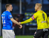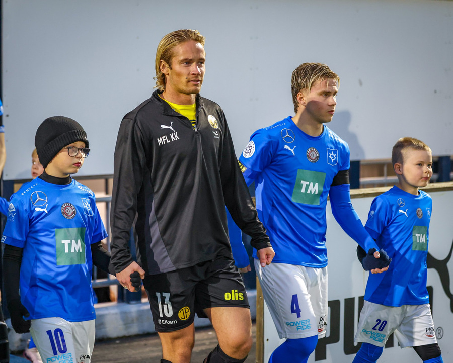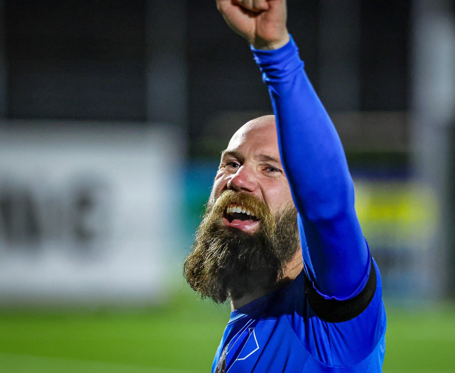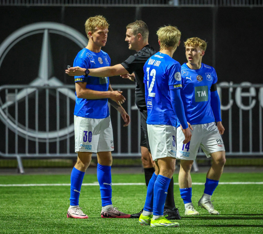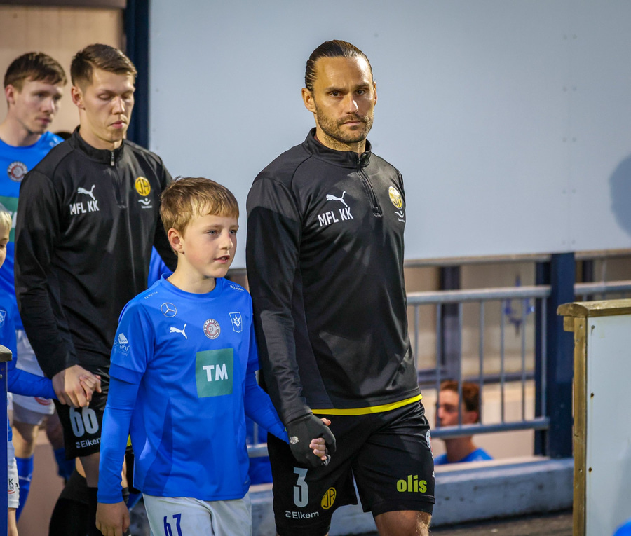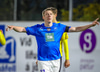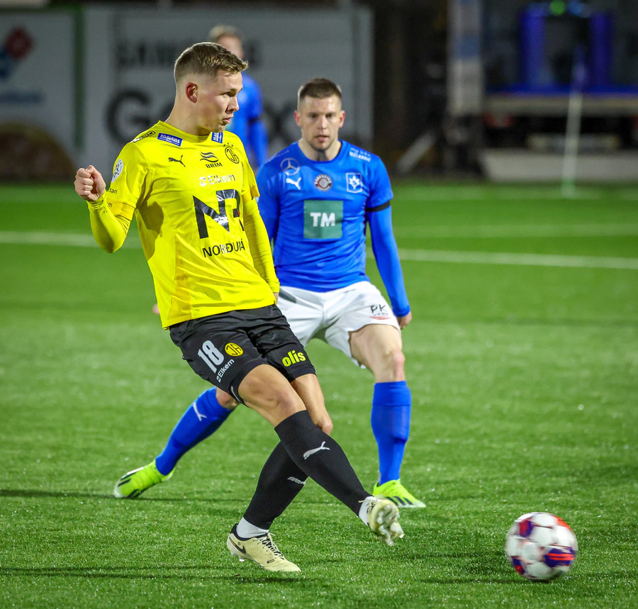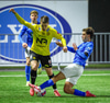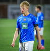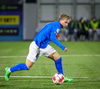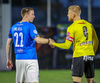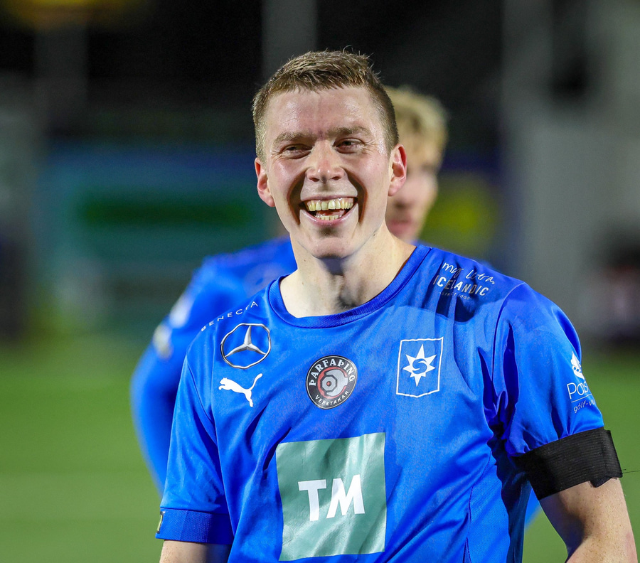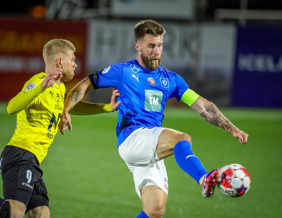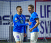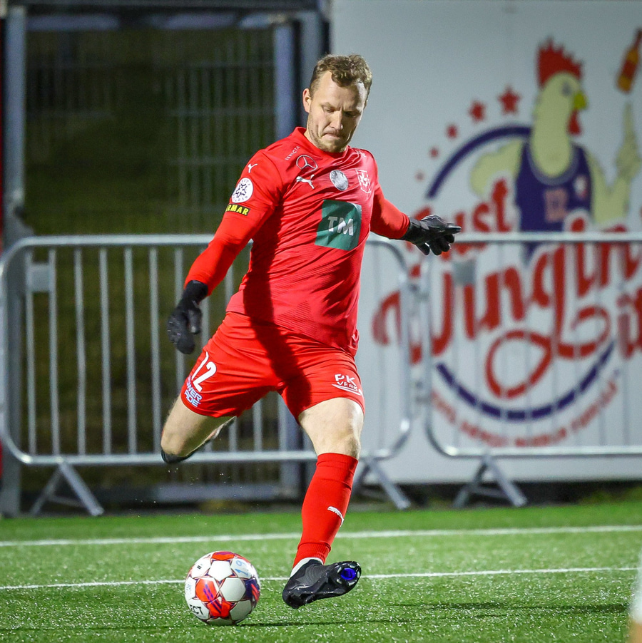 Johannes Vall er mættur niður á marklínu til að hreinsa boltann en fær hann í sig og boltinn fór yfir línuna áður en hann náði að hreinsa frá.