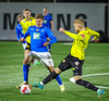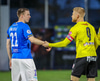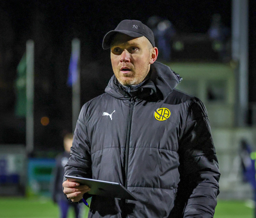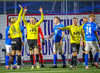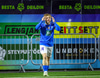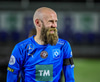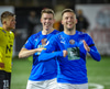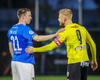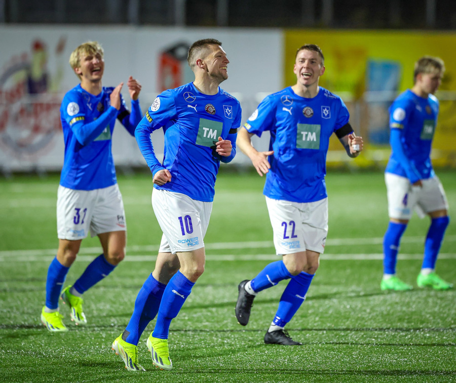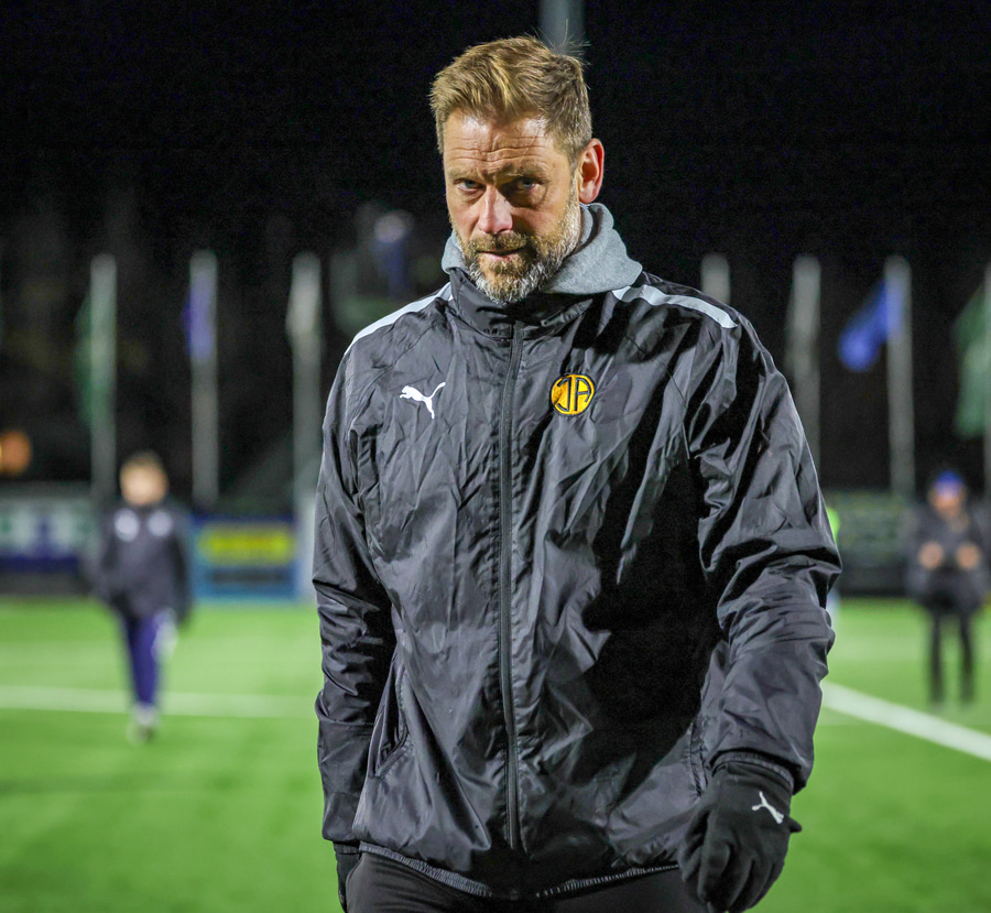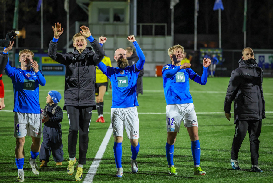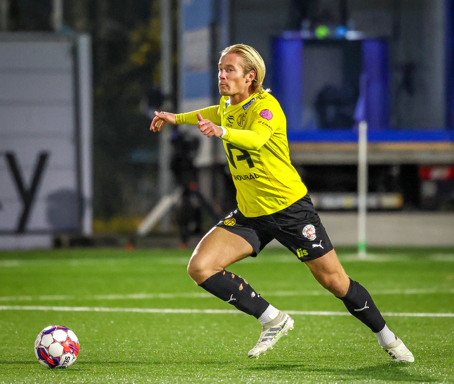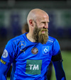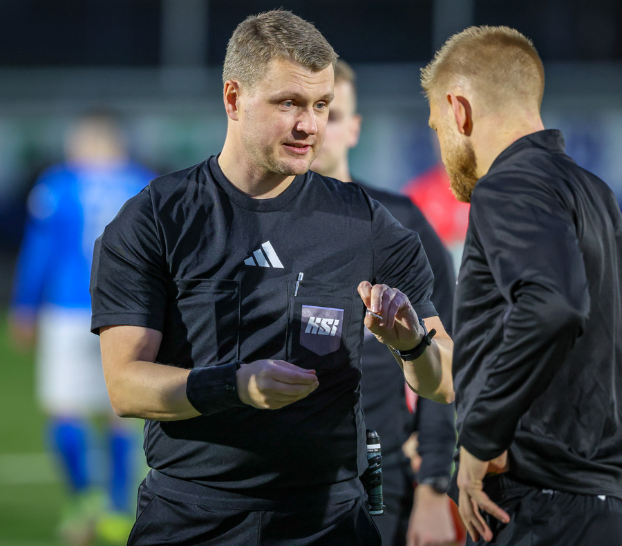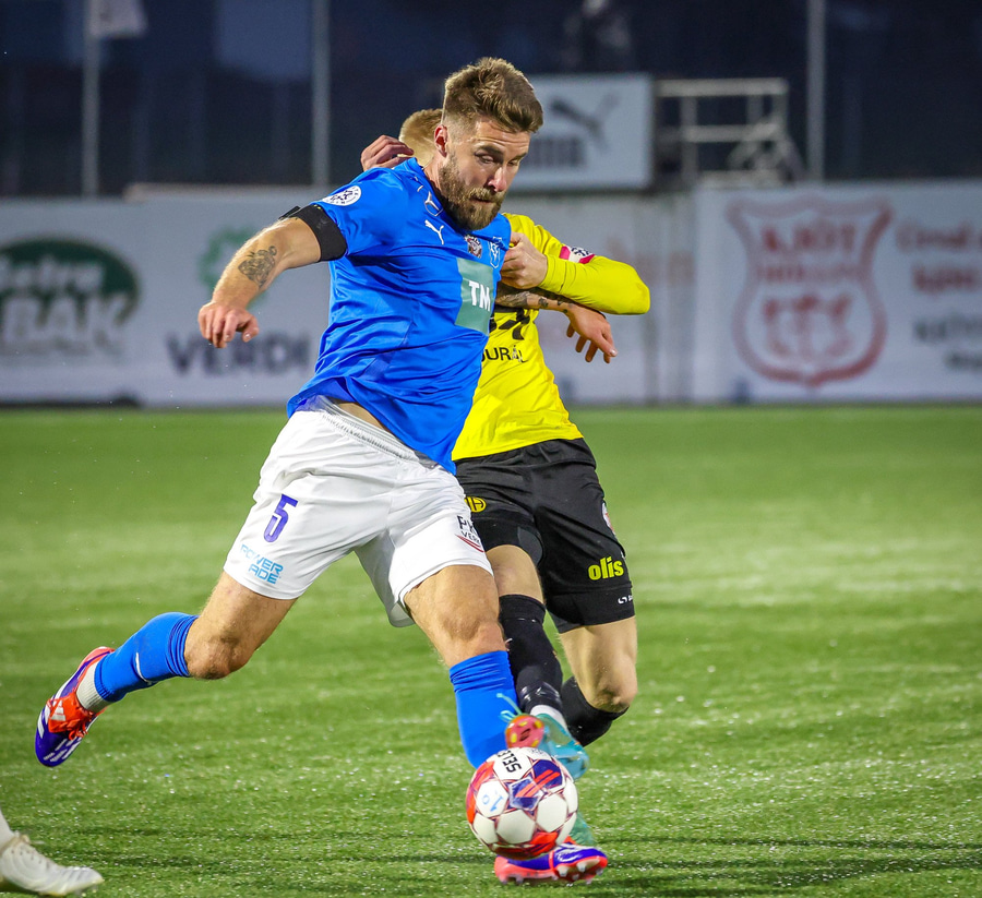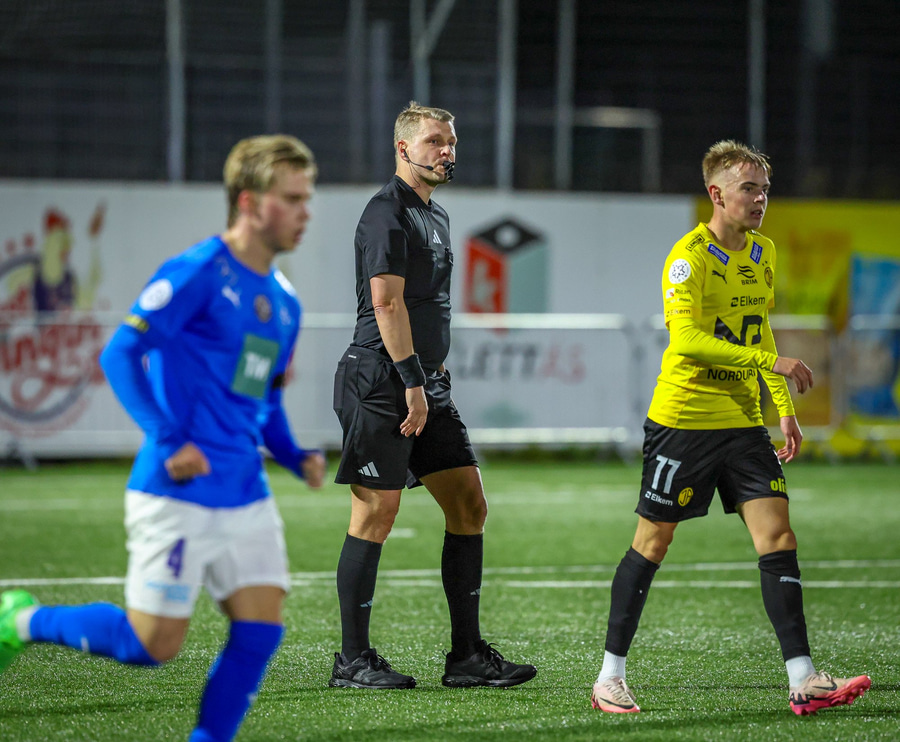 Johannes Vall er mættur niður á marklínu til að hreinsa boltann en fær hann í sig og boltinn fór yfir línuna áður en hann náði að hreinsa frá.