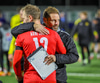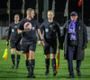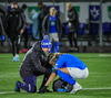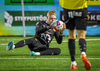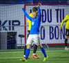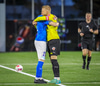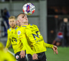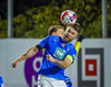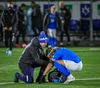 Viktor Jóns liggur niðri eftir að hafa fengið boltann í hausinn af stuttu færi. Hann er staðinn á fætur og heldur hér leik áfram sýnist mér.