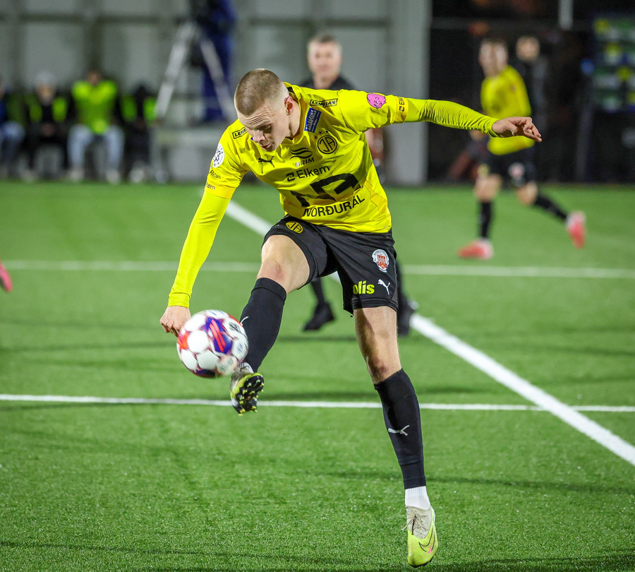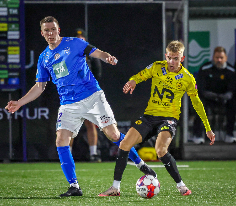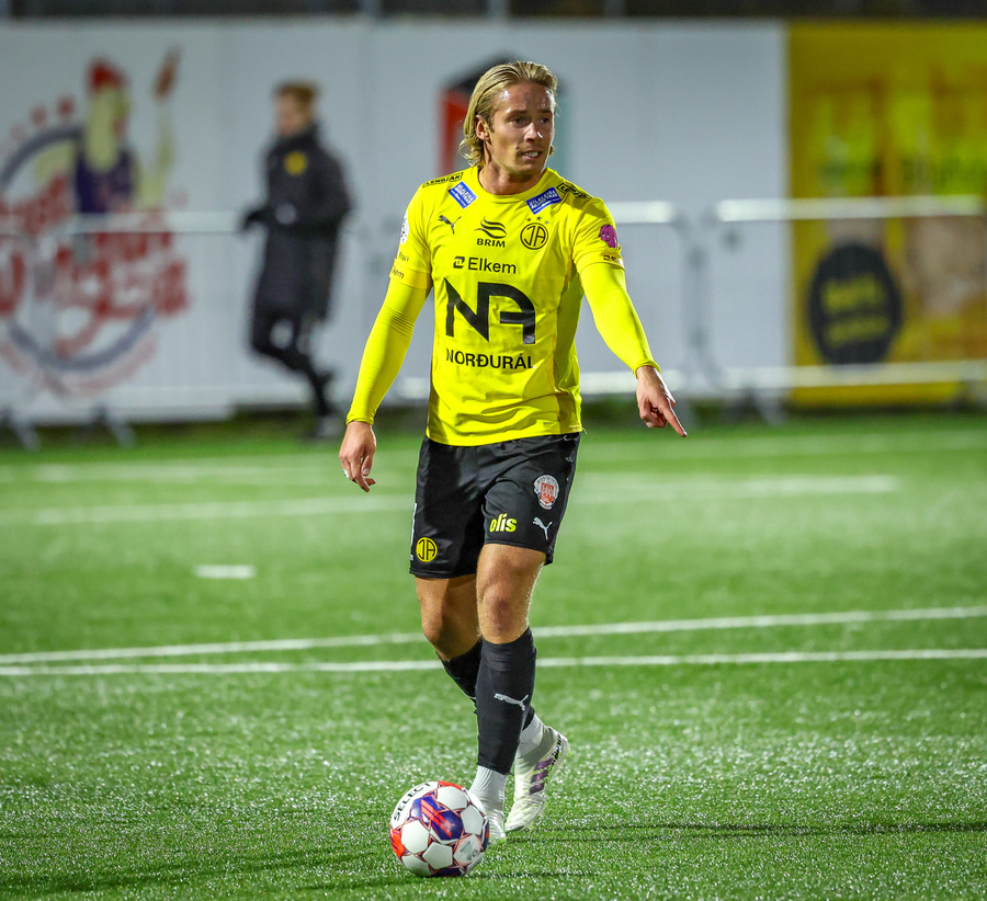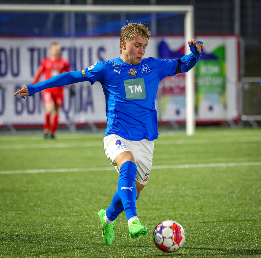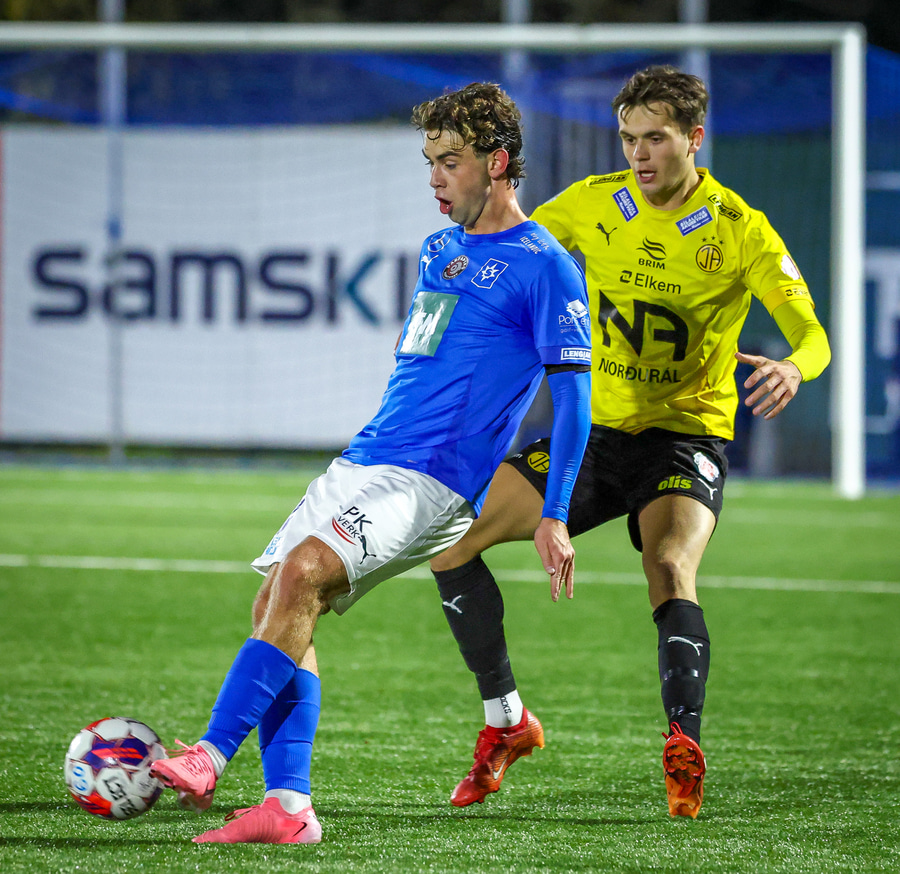 Árni Snær kemur með langan bolta fram upp völlinn á Emil Atla sem tekur ekkert smá snyrtilega á móti boltanum og tekur svo skotið en Erik Tobias gerir líka vel og kemst fyrir skotið. En þetta touch hjá Emil Atla!