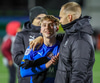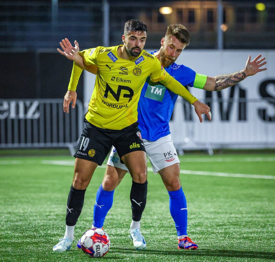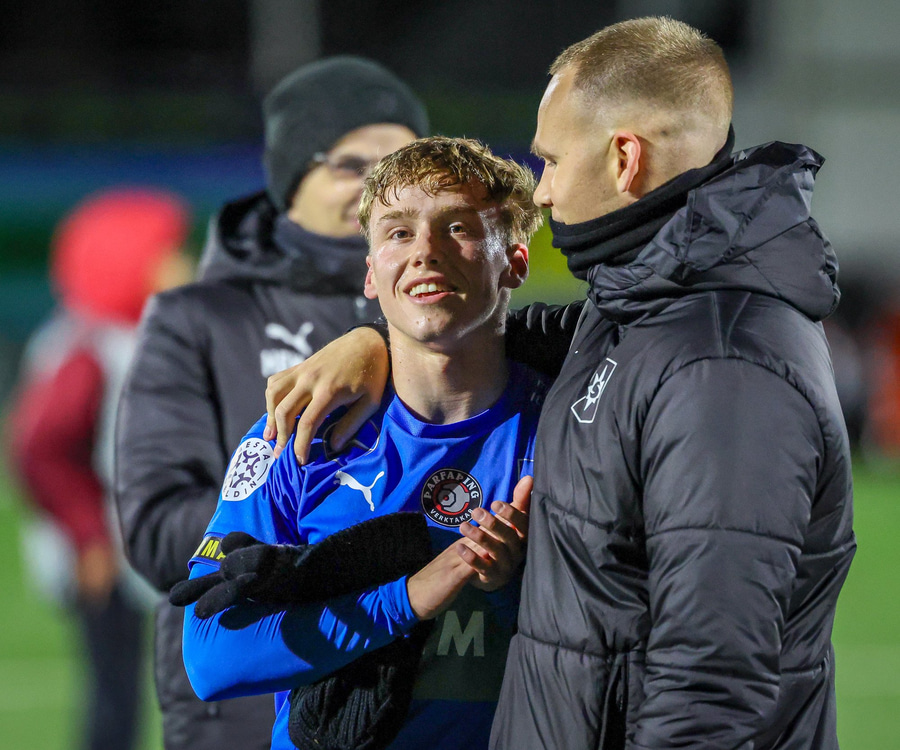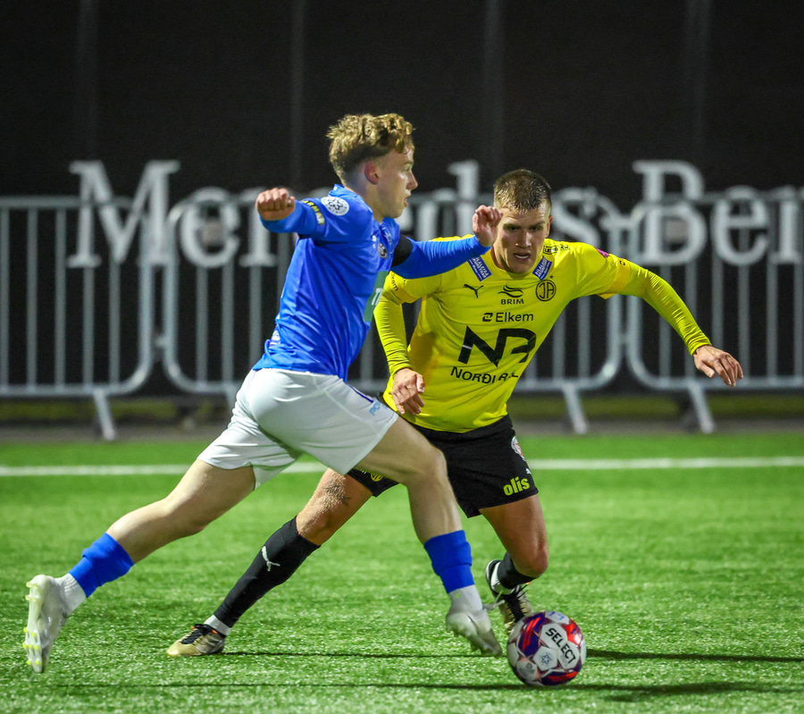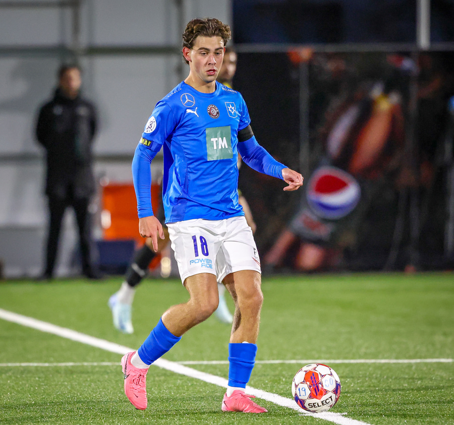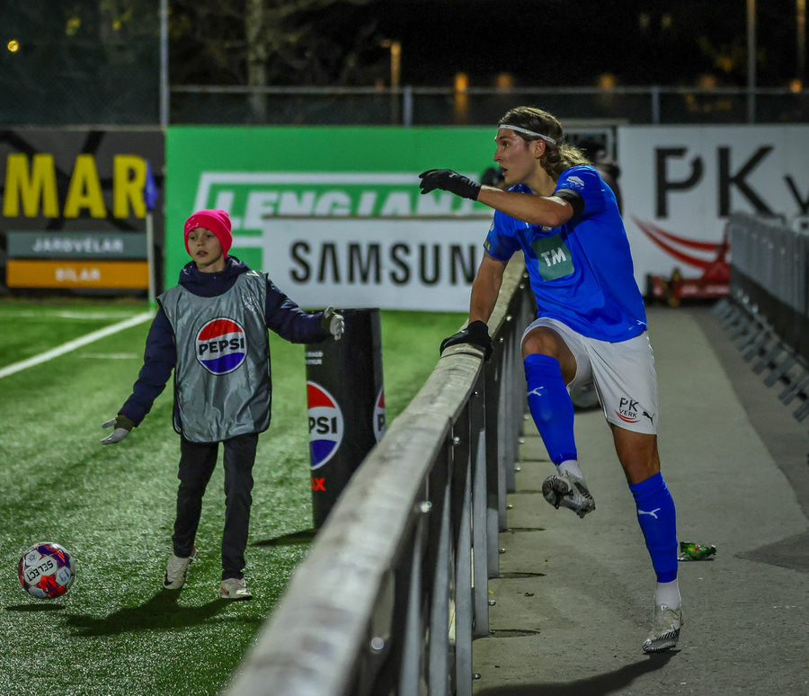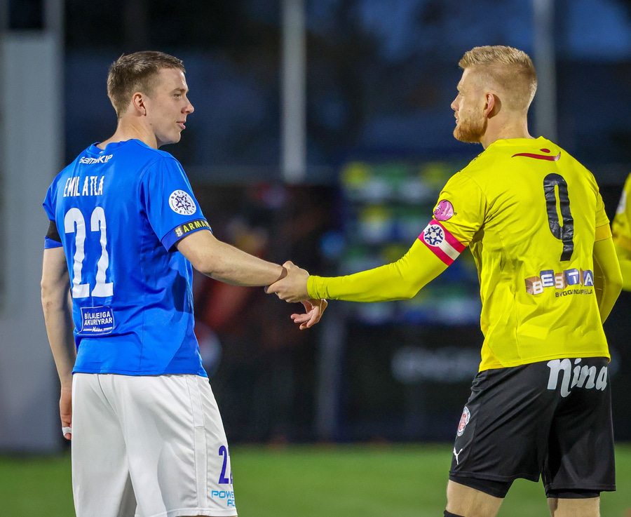 Árni Snær kemur með langan bolta fram upp völlinn á Emil Atla sem tekur ekkert smá snyrtilega á móti boltanum og tekur svo skotið en Erik Tobias gerir líka vel og kemst fyrir skotið. En þetta touch hjá Emil Atla!