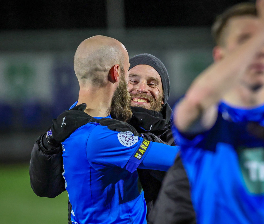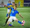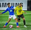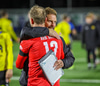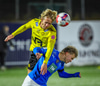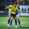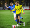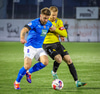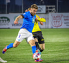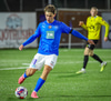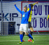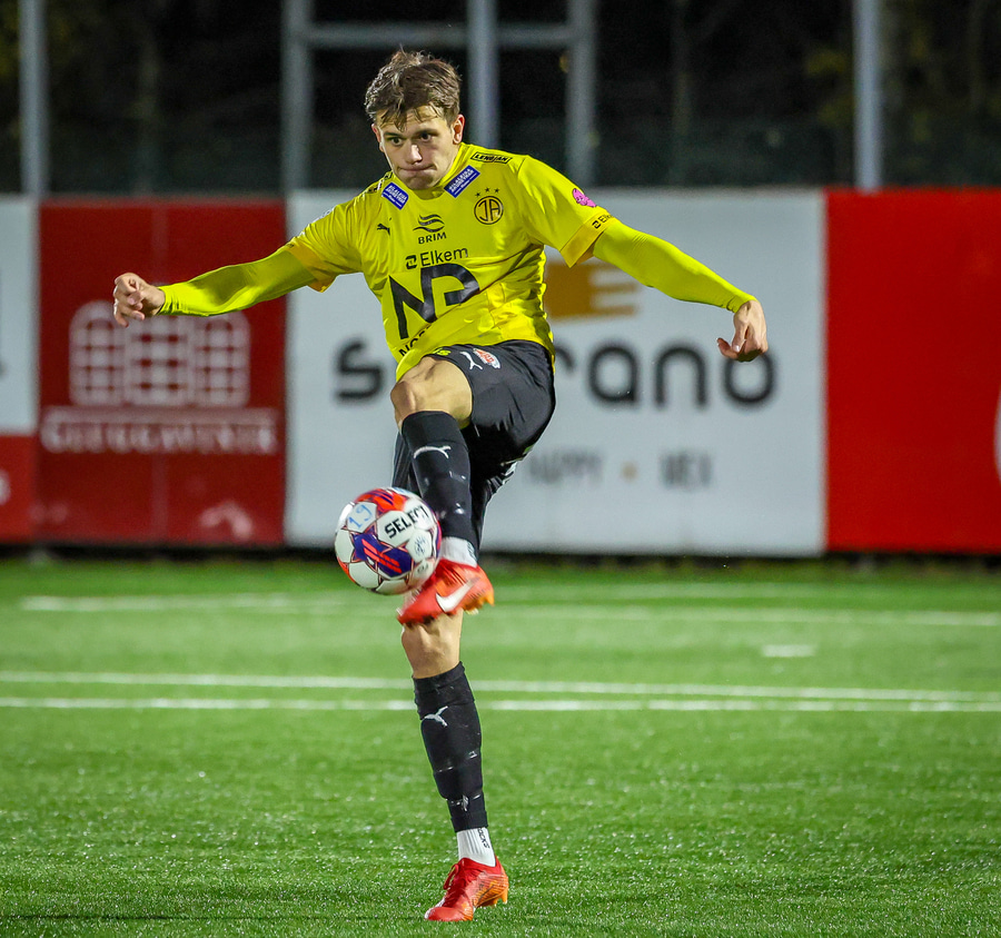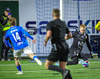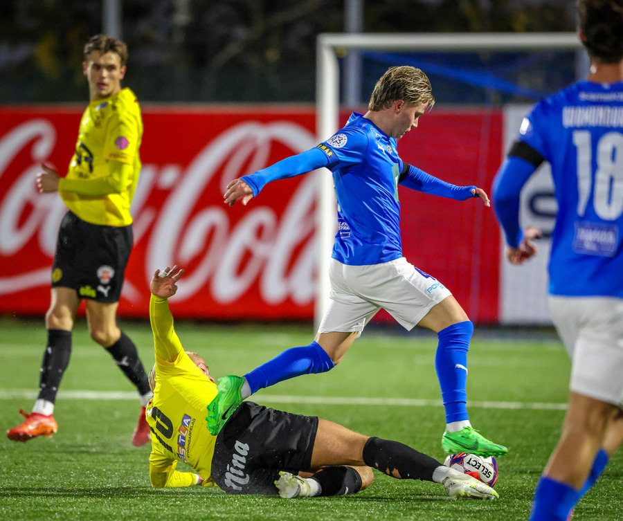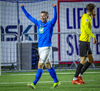 Erik Tobias gerir glæsilega og vinnur boltann með frábærri tæklingu. Hann kemur boltanum svo upp á Hinrik Harðar sem keyrir í átt að teignum og tekur skotið sem fer í hliðarnetið.