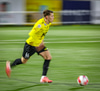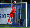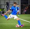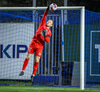Haukur Andri fær boltann við D-bogann og lætur vaða á markið. Skotið var mjög gott en Árni Snær ver í horn.
