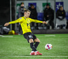 Ingi Þór tekur sprnuna inn á teiginn sem Emil Atla skallar frá áður en Jón Gísli tekur skotið í varnarmann og aftur fyrir.