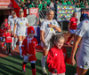 Blikar leika í sínum hvítu varatreyjum og eiga upphafsparkið.