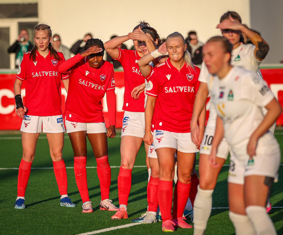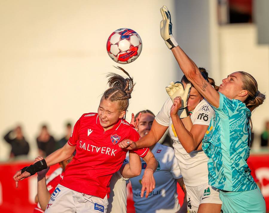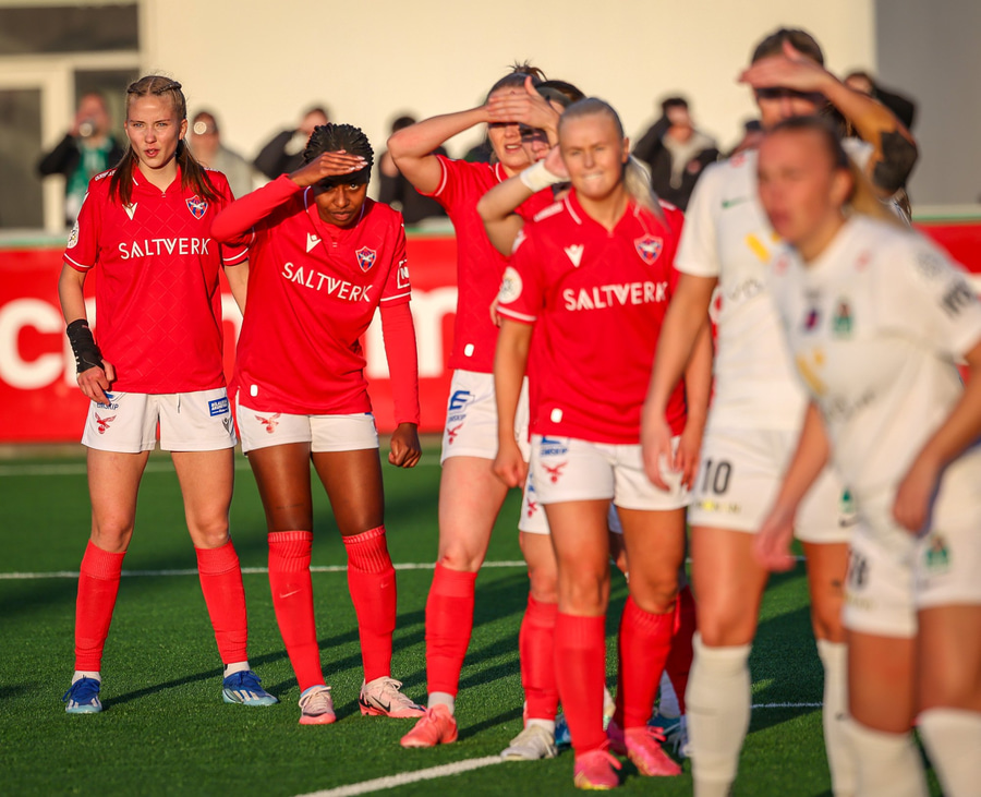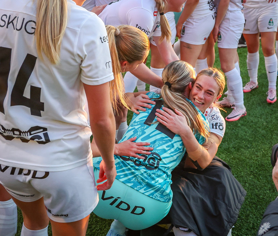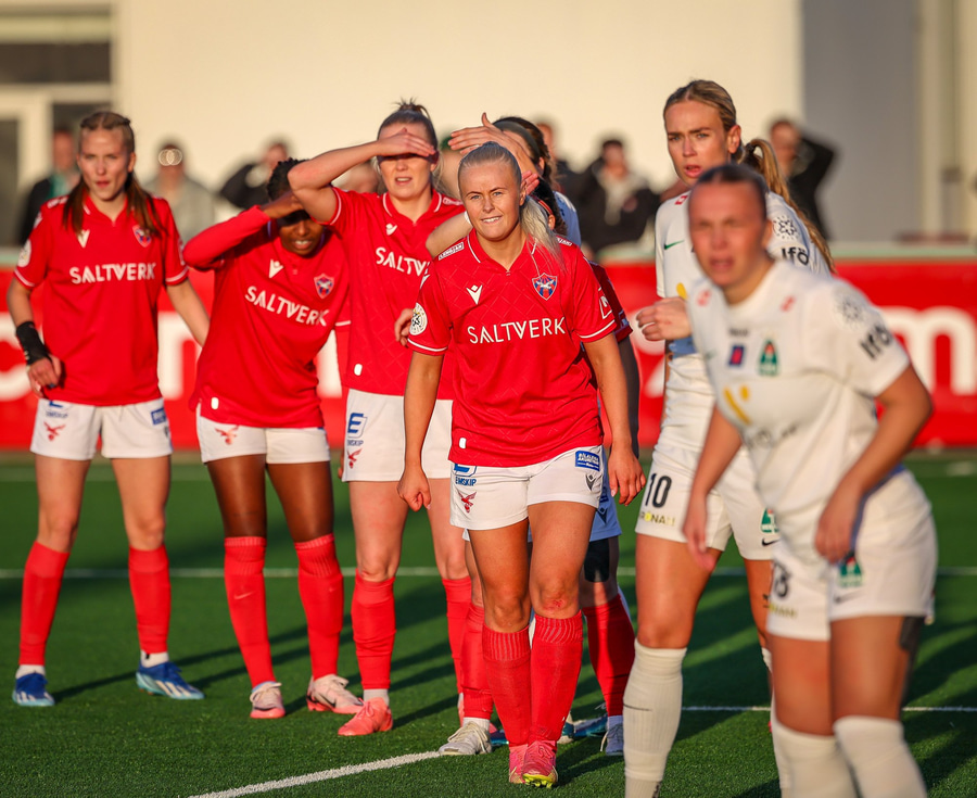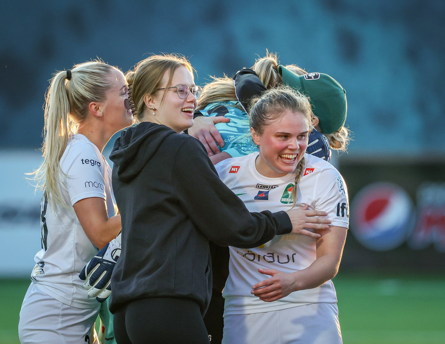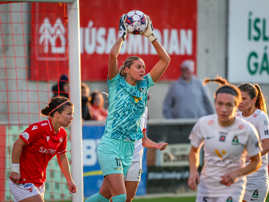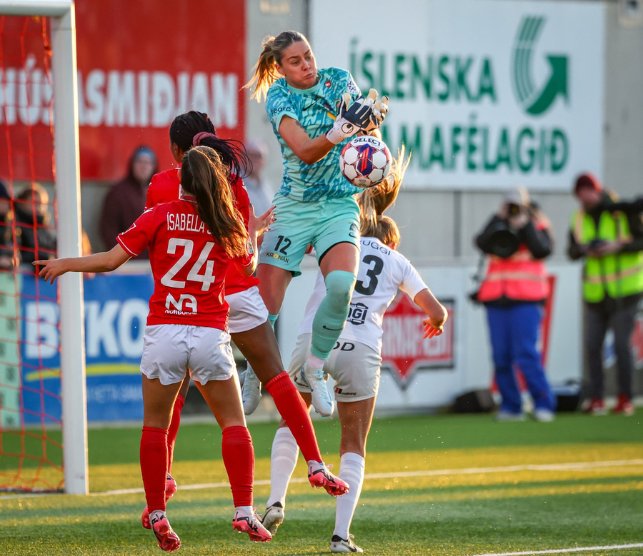 Valskonur liggja á vítateig Blika og síðan kemur fyrirgjöf inn á teiginn sem Telma handsamar og því er fagnað eins og marki af Blikum!