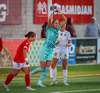 Katei Cousins kemur með fyrirgjöf inn á teiginn sem Telma gerir vel í að handsama.