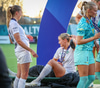 Andrea Rut og Anna Rakel liggja báðar niðri eftir samstuð og þurfa aðhlynningu.