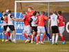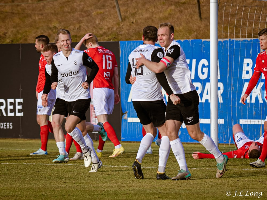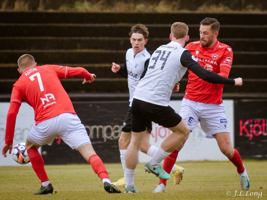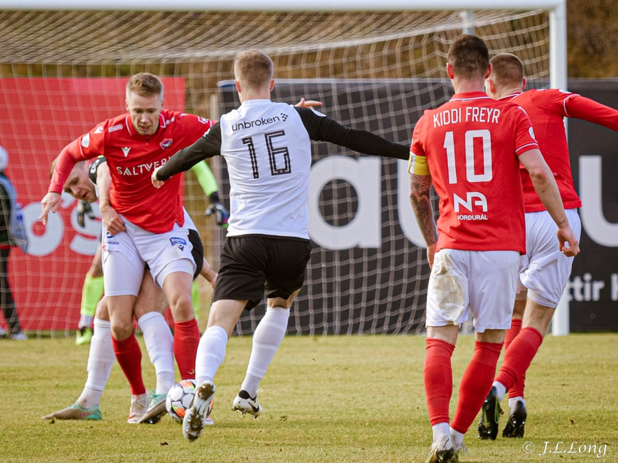 Sýndist það vera Orri Sigurður sem verður fyrir því óláni að skora í eigið net.