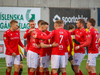 Valsmenn leika í rauðum treyjum, hvítum stuttbuxum og rauðum sokkum.