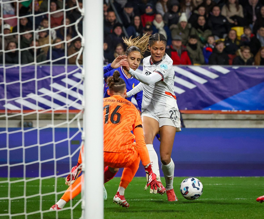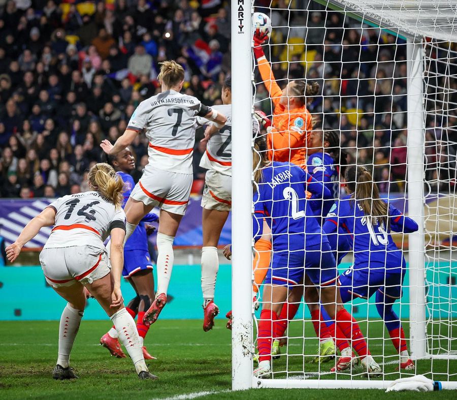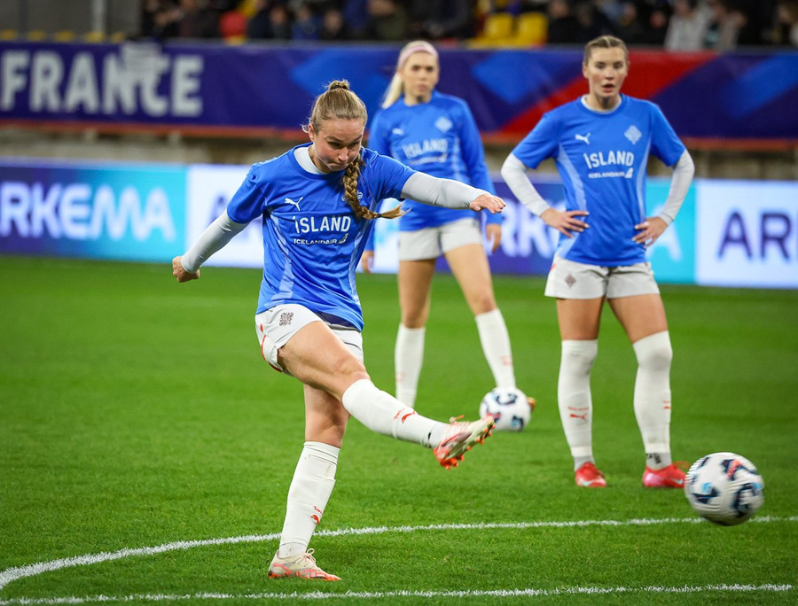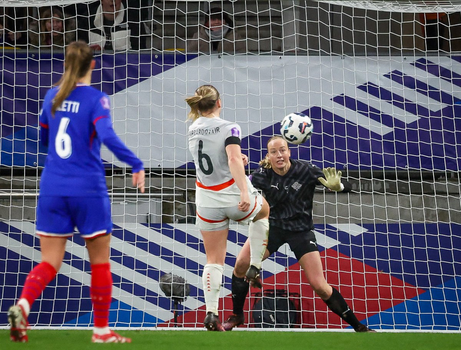 Ingibjörg minnkaði muninn með alvöru íslensku marki. Frakkar réðu ekki við hornspyrnu Karólínu og Ingibjörg var rétt kona á réttum stað ???????? pic.twitter.com/KBkUjcGWeR