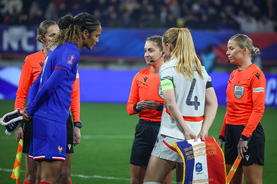 Hennar síðasti Evrópuleikur var einmitt hér í Frakklandi 17. desember síðastliðinn þegar hún dæmdi Meistaradeildarleik Lyon og Wolfsburg en Sveindís Jane Jónsdóttir spilaði með síðarnefnda liðinu í leiknum.